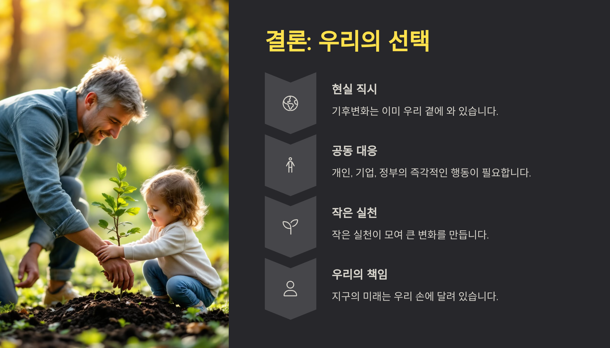 이제는 우리 개인의 삶 속에서도 변화를 만들어야 할 때예요. 다음 섹션에서는 우리가 실천할 수 있는 구체적인 기후 대응 방법을 알아볼게요. 평범한 일상에서 시작되는 변화, 의외로 많답니다!