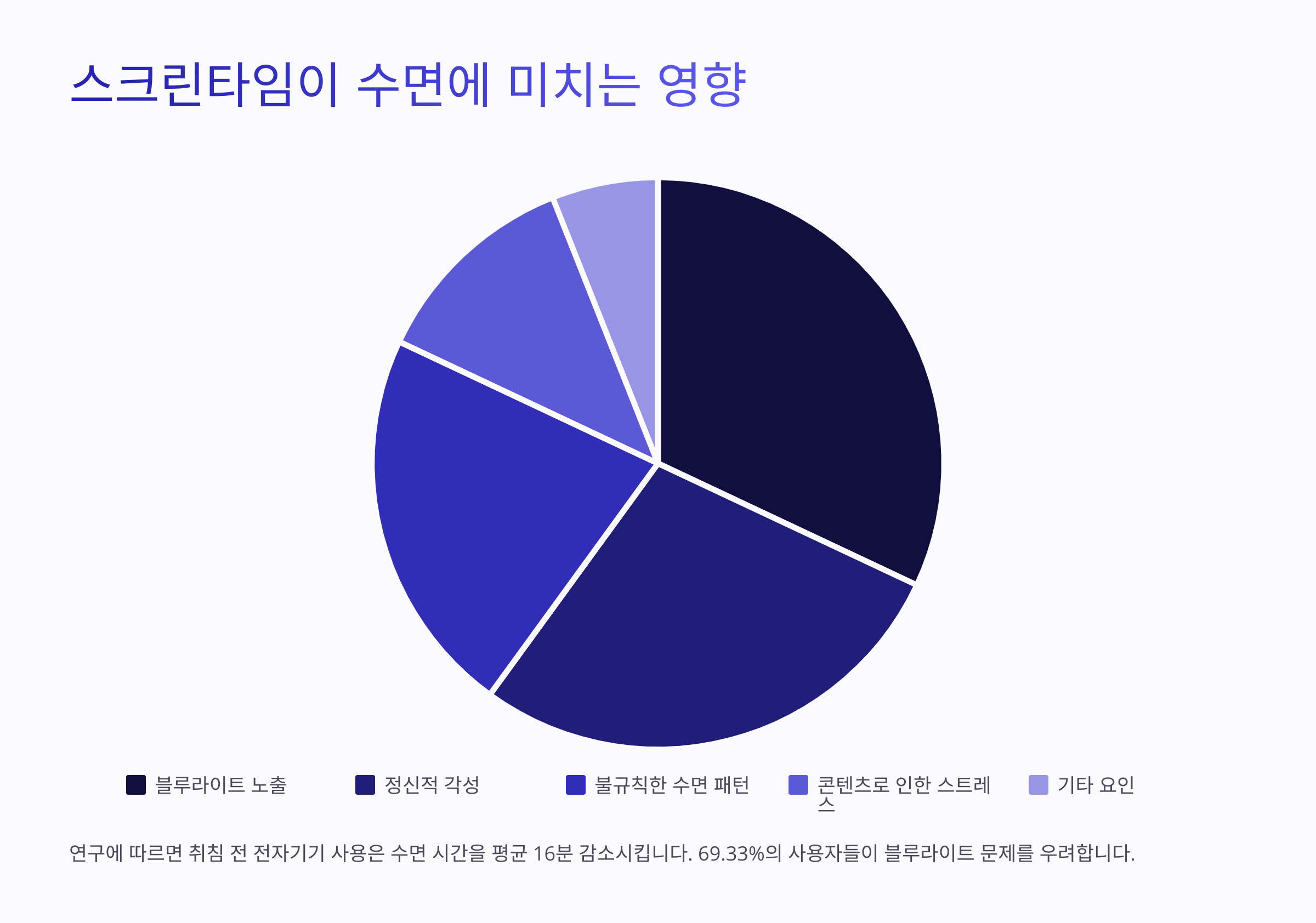 이런 생체 리듬의 혼란은 잠드는 데 걸리는 시간을 늘리고, 깊은 수면의 질을 낮추죠. 특히 자기 직전에 스마트폰을 보는 습관은 수면의 가장 큰 적이 될 수 있어요. 연구에 따르면 자기 전 1시간 이내에 블루라이트에 노출되면 평균적으로 수면 시간이 30분 이상 줄어든다고 해요.