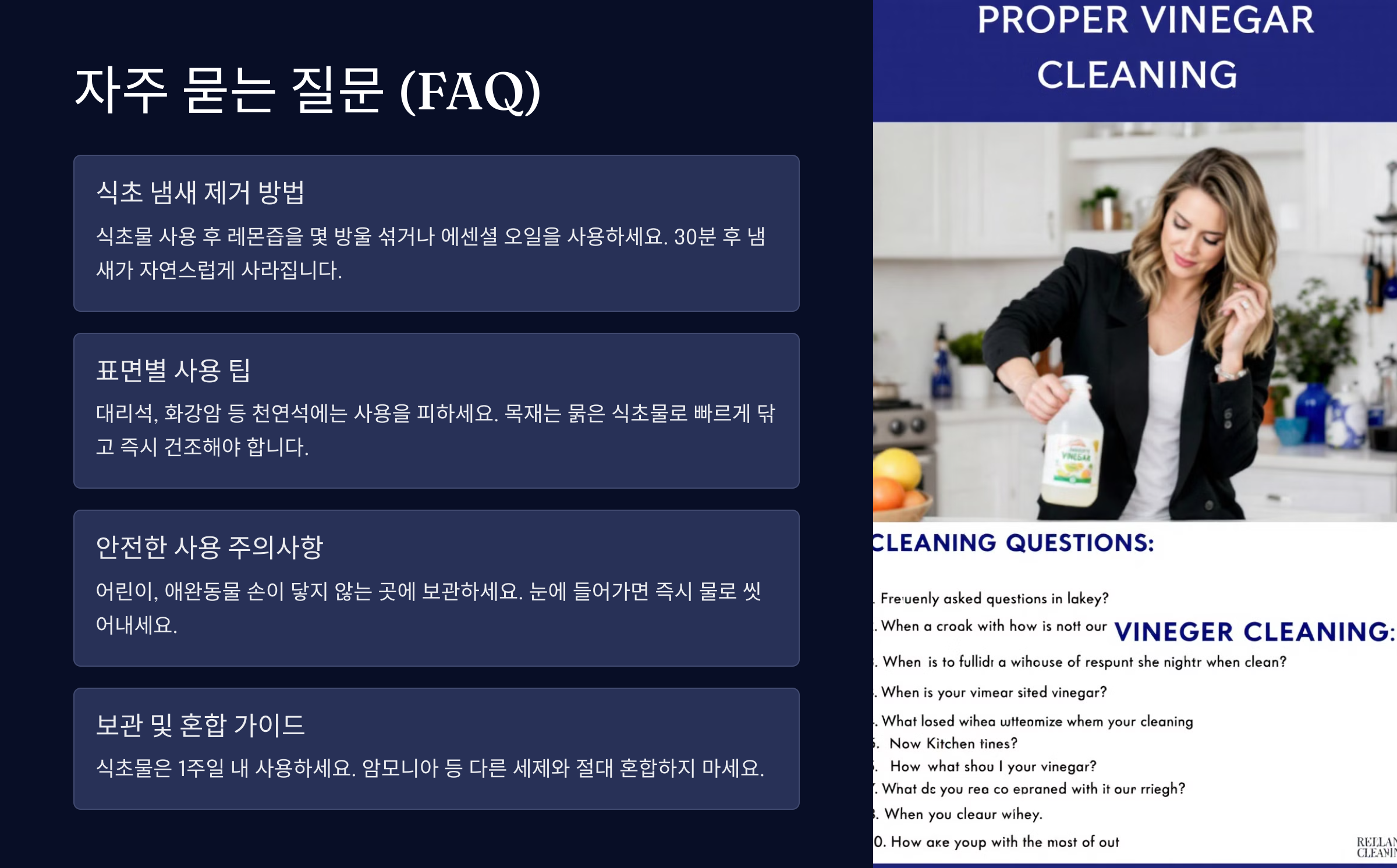 A7. 네, 희석한 식초물은 안전해요. 사용 후에는 물로 헹궈 잔여물이 남지 않게 해주세요.