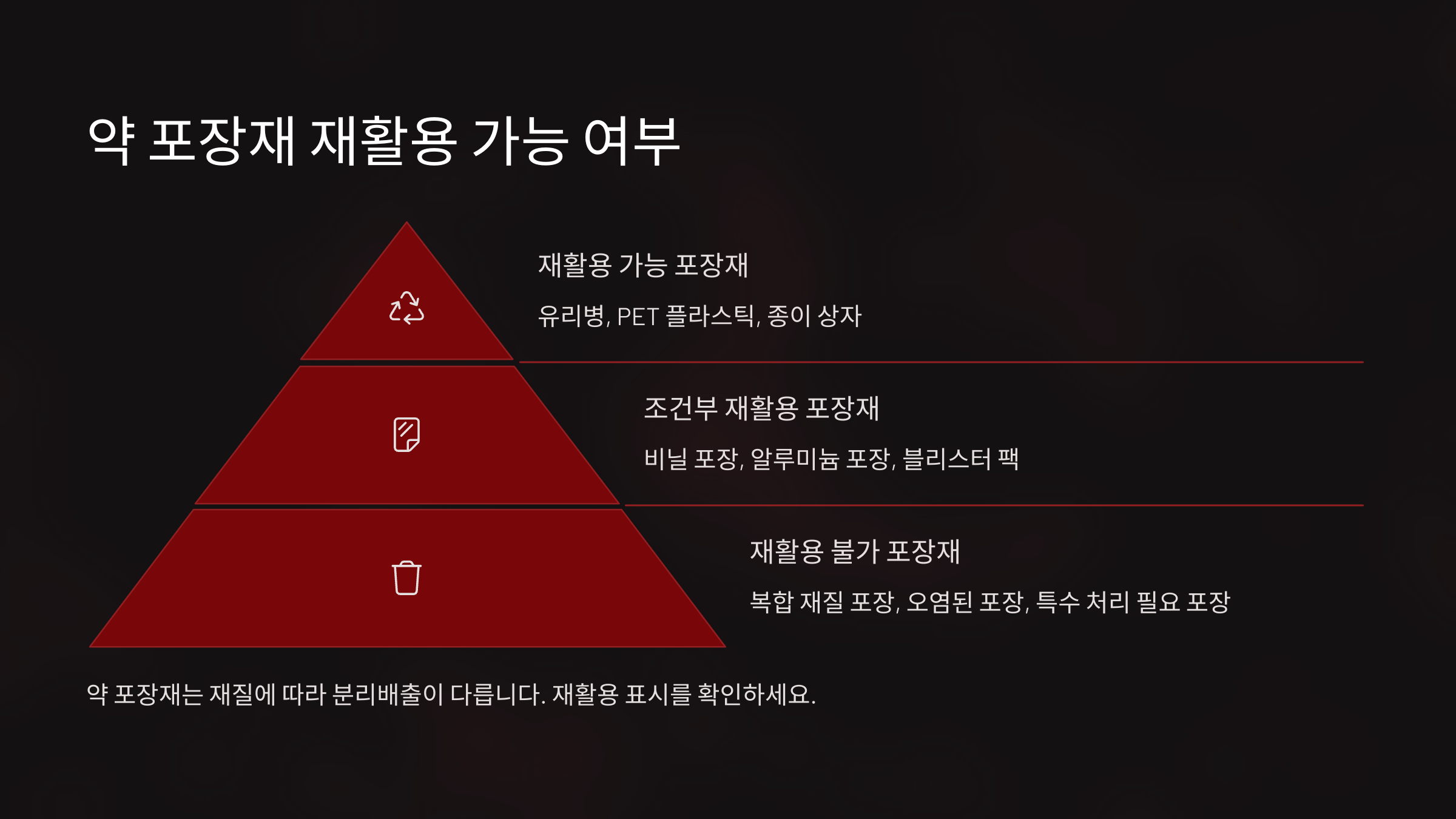 가장 문제가 되는 건 알약의 PTP 포장인데요, 이건 알루미늄과 PVC(플라스틱)이 결합된 구조라 분리 자체가 불가능해요. 그래서 무조건 일반쓰레기로 분류해야 해요. 아무리 깨끗하게 해도 이건 재활용 불가예요. ⚠️