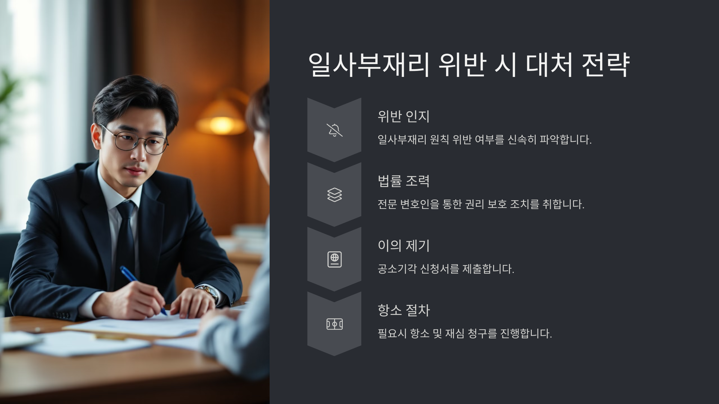 | 2단계 | 변호사 상담 | 법률적 검토와 전략 수립 |
