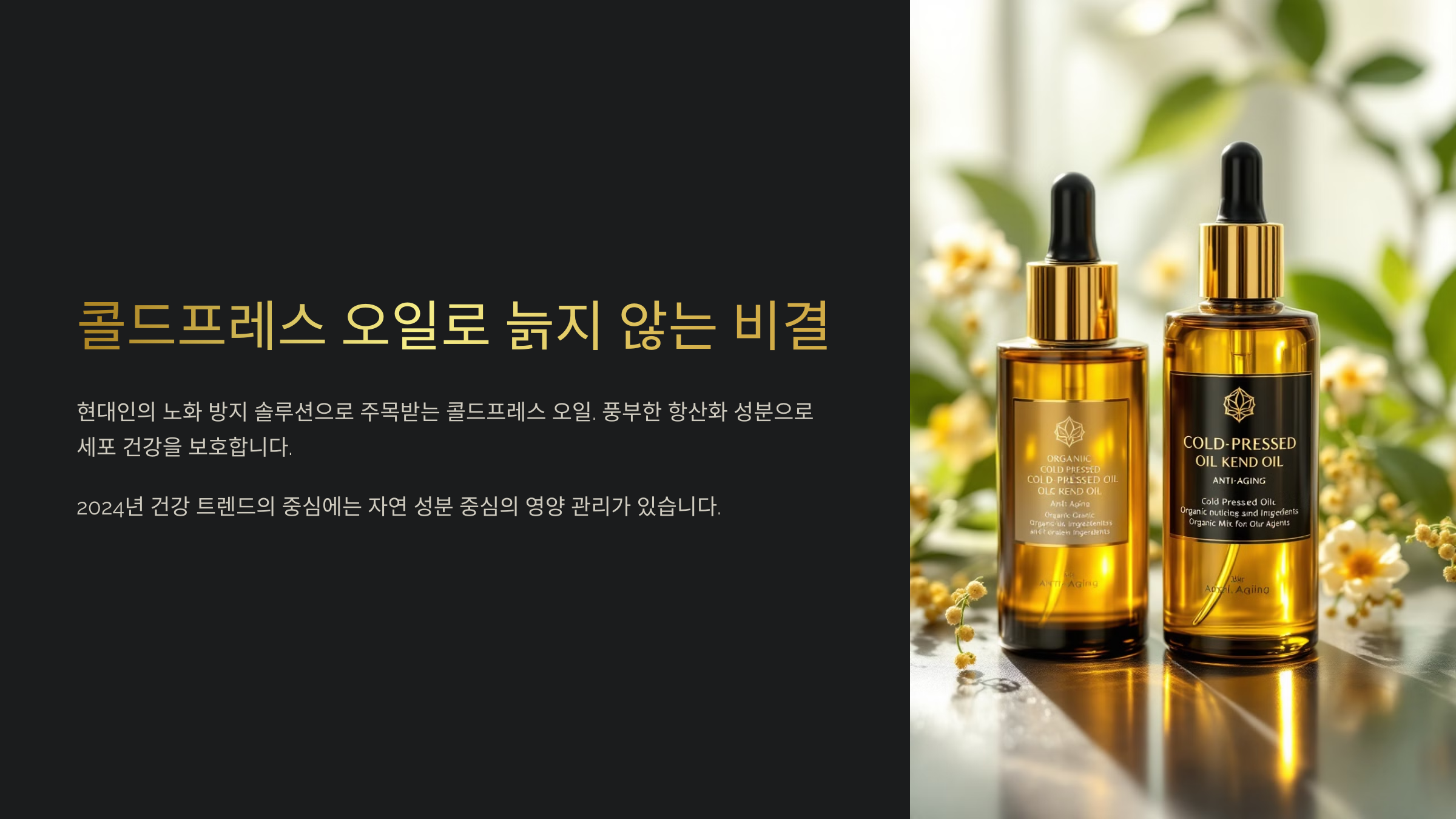 그럼 지금부터 콜드프레스 오일의 효과와 올바른 복용법, 노화를 늦추는 오일 종류까지 자세히 알아볼게요. 각 섹션은 자연스럽게 연결되어 있으니 끝까지 읽어주세요 😊