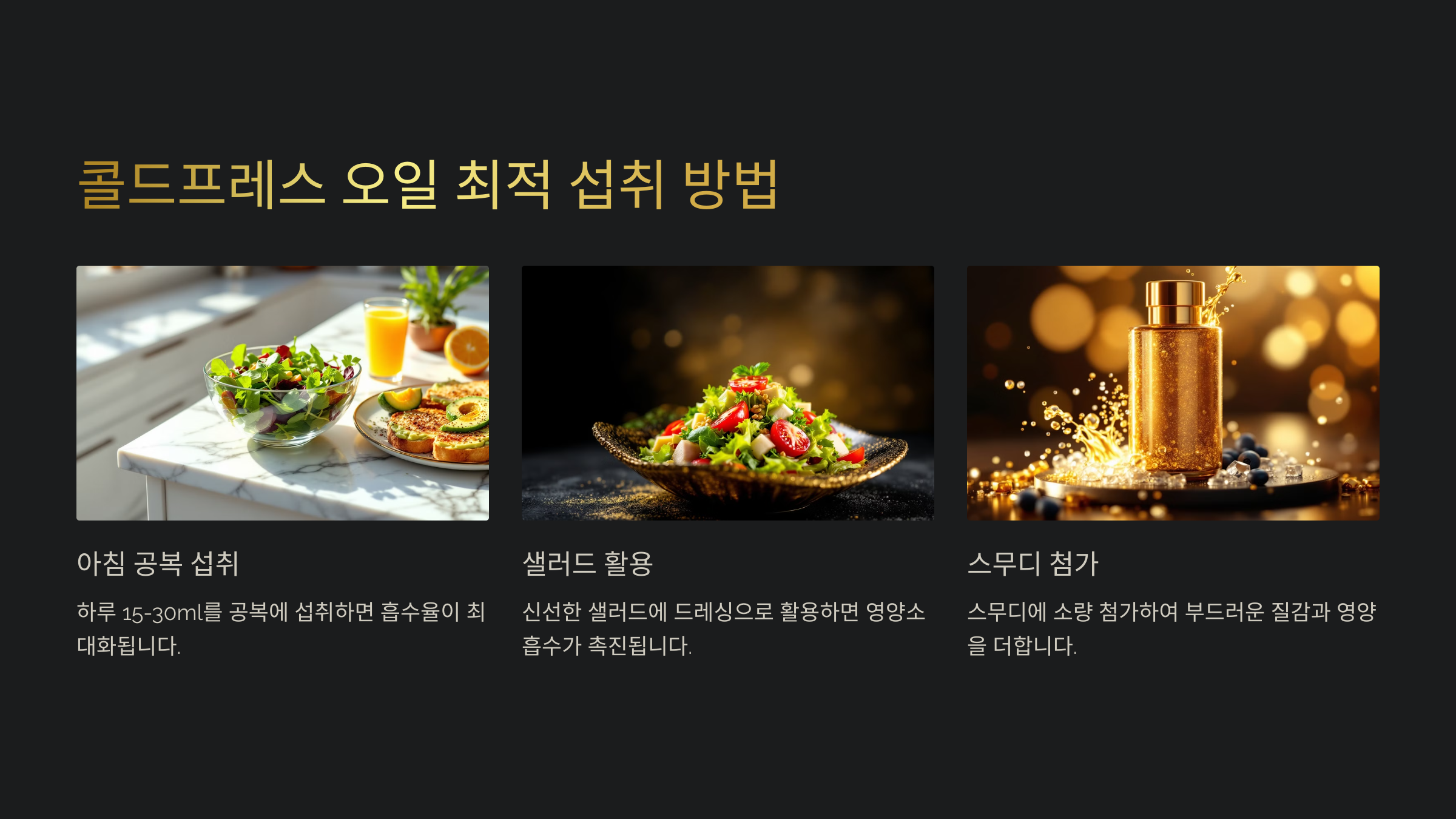 다음 섹션에서는 🥄 '콜드프레스 오일 복용 방법'을 자세히 알아볼 거예요! 이어서 확인해보세요 👇