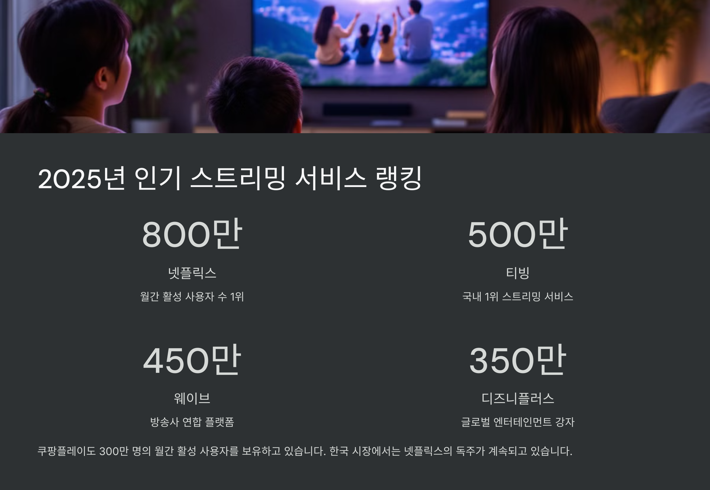 스트리밍 시장은 매년 변화하고 있어요. 특히 2025년에는 OTT(Over The Top) 서비스 경쟁이 더욱 치열해졌는데요! 어떤 서비스가 가장 인기가 많을까요?
