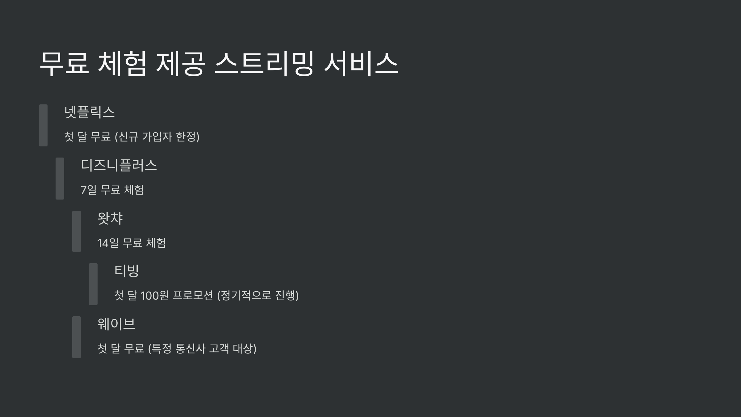다음으로, 무료 체험이 가능한 스트리밍 서비스는 어디인지 알아볼까요? 🎁