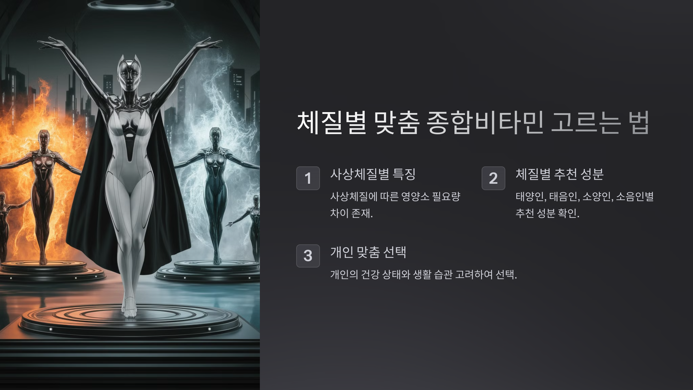 종합비타민을 선택할 때는 단순히 인기 제품을 구매하는 것이 아니라, 자신의 체질과 건강 상태에 맞춰 고르는 것이 중요해요. 사람마다 영양소 필요량이 다르기 때문에 맞춤형 선택이 필수죠. 🤔