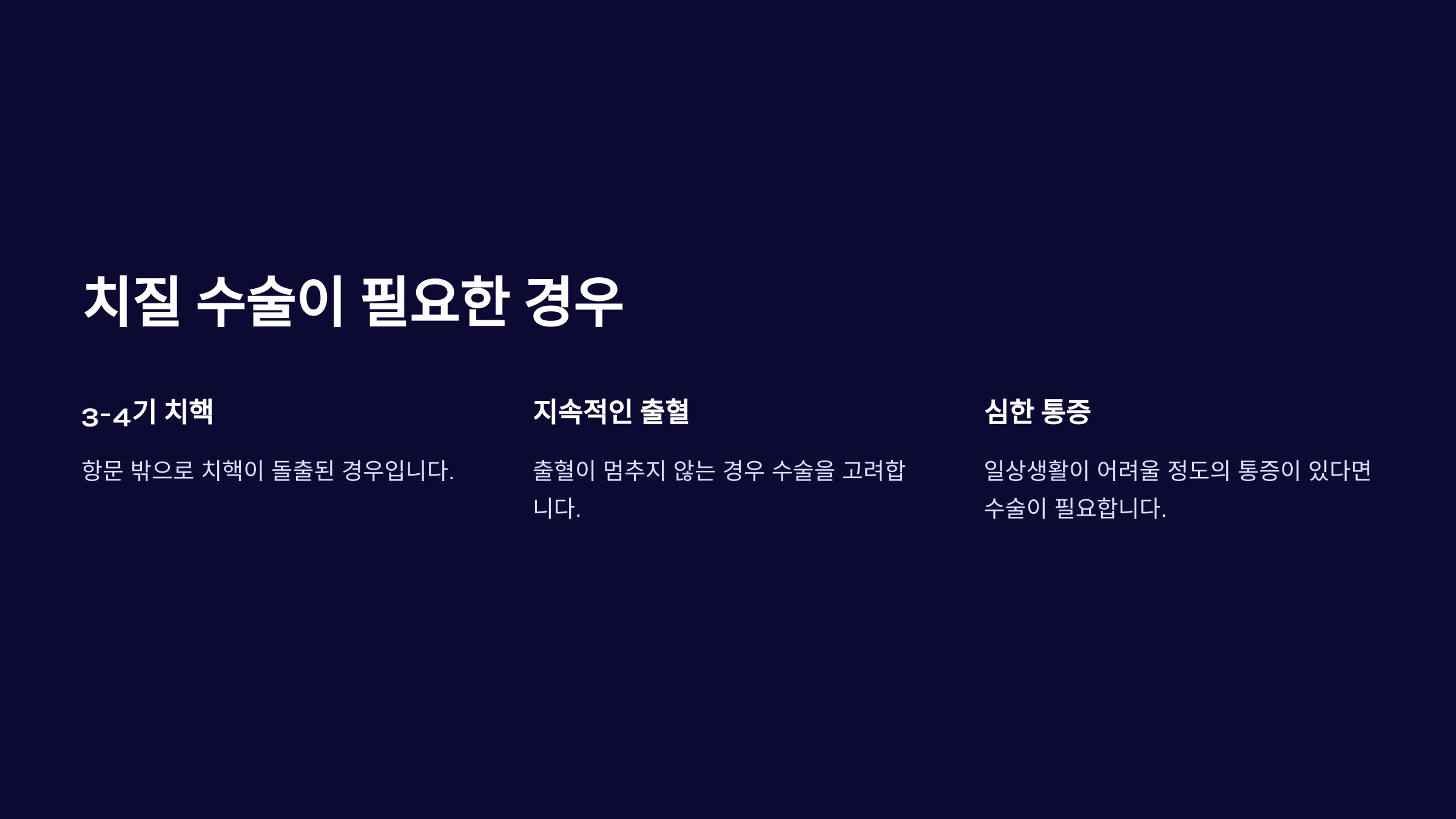 다음과 같은 증상이 있다면 수술을 고려해야 해요: