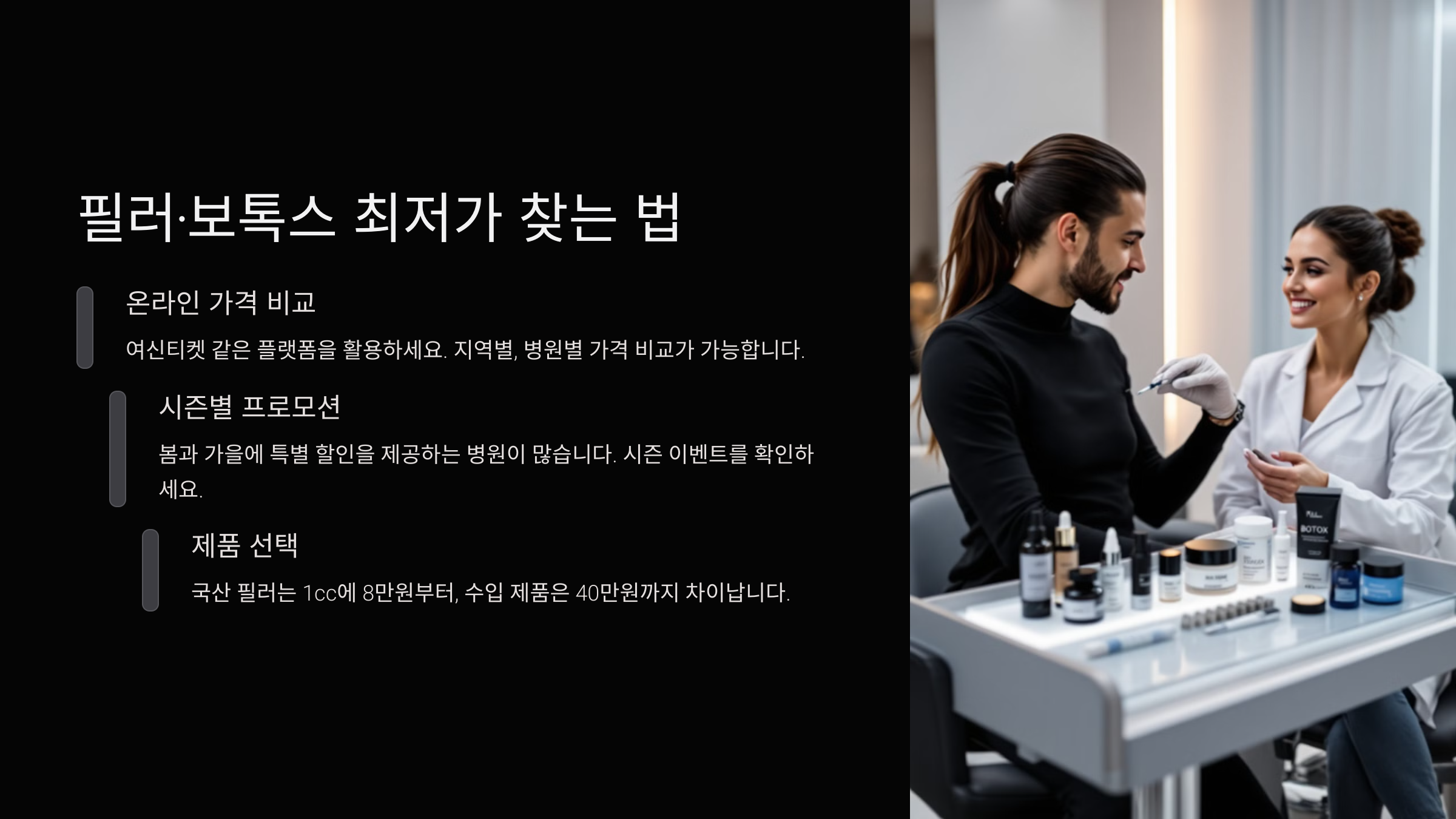주름 개선과 볼륨감을 위해 필러와 보톡스를 찾는 사람들이 많아요. 하지만 같은 성분인데도 병원마다 가격 차이가 큰 경우가 많죠? 🤔