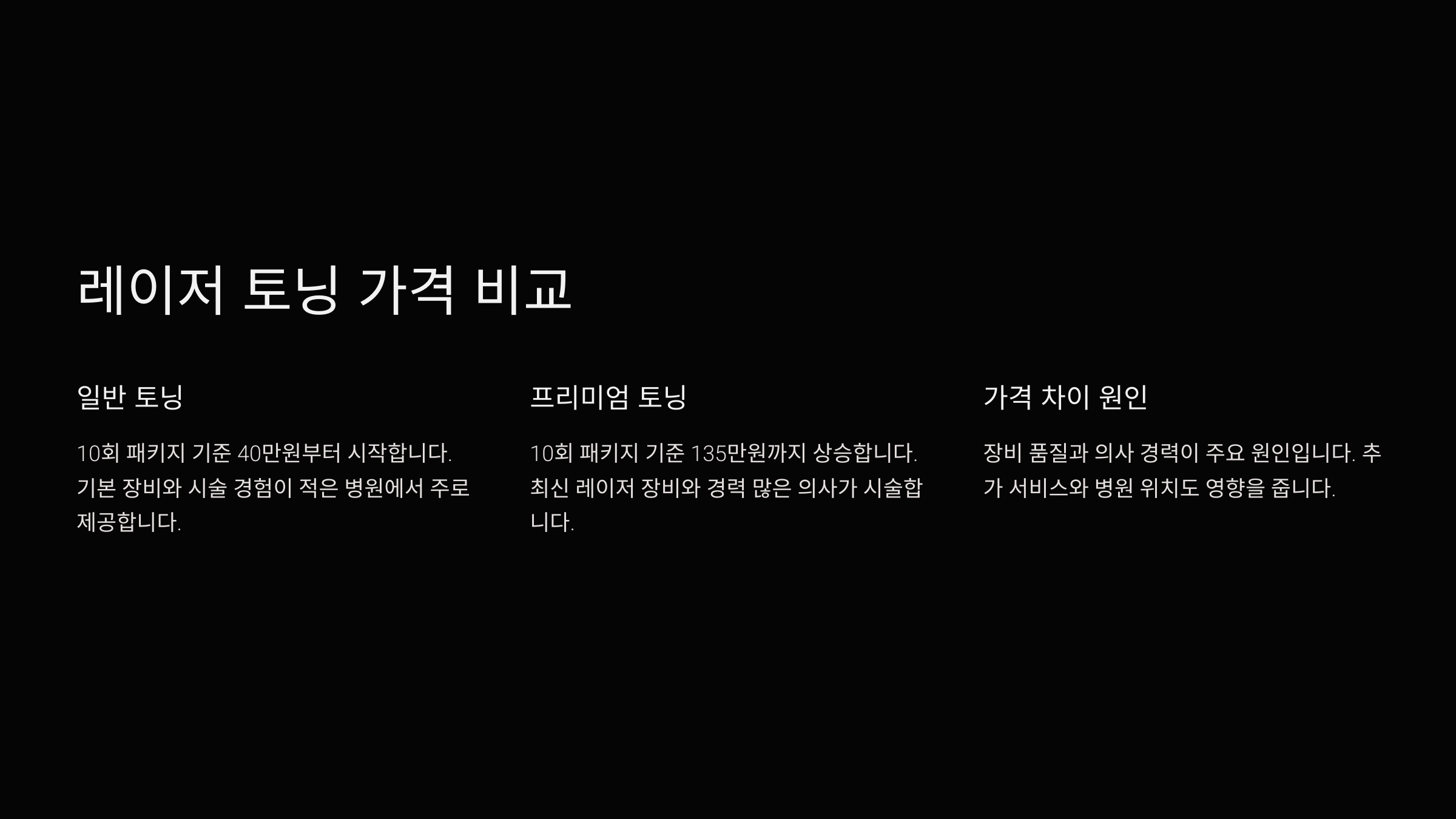 그럼 먼저 레이저 토닝 시술의 가격 비교부터 시작할게요! 😉
