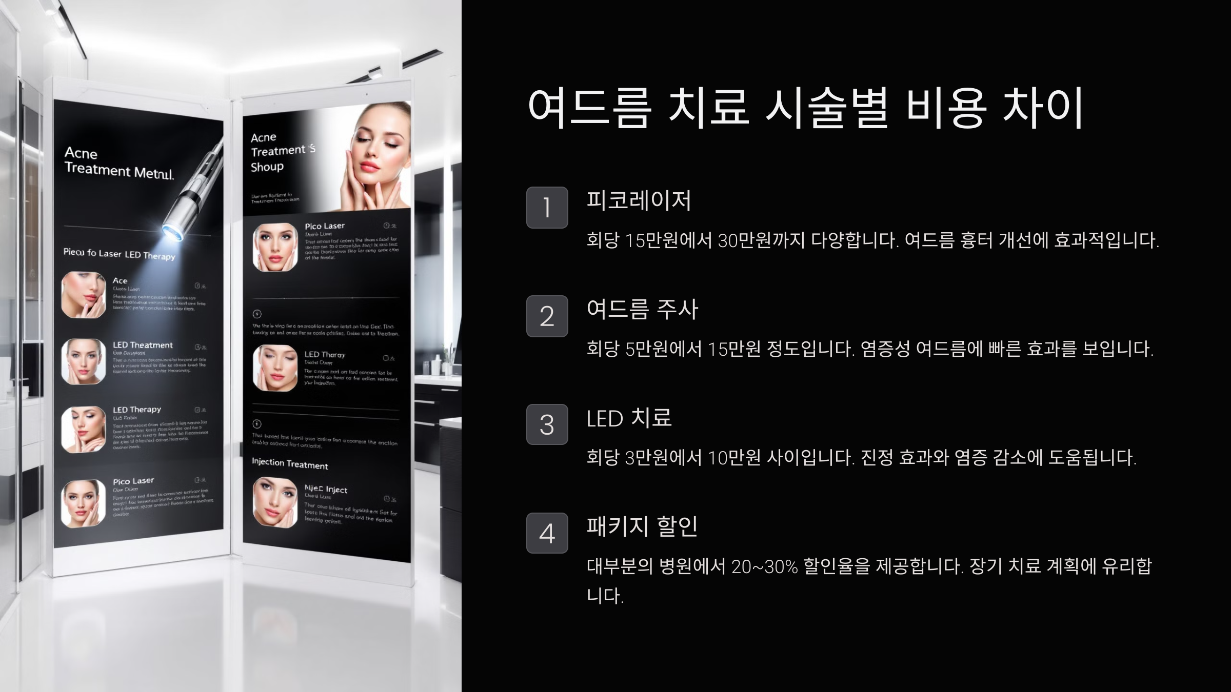 그럼 다음으로 여드름 치료 시술의 비용 차이를 알아볼까요? 😊