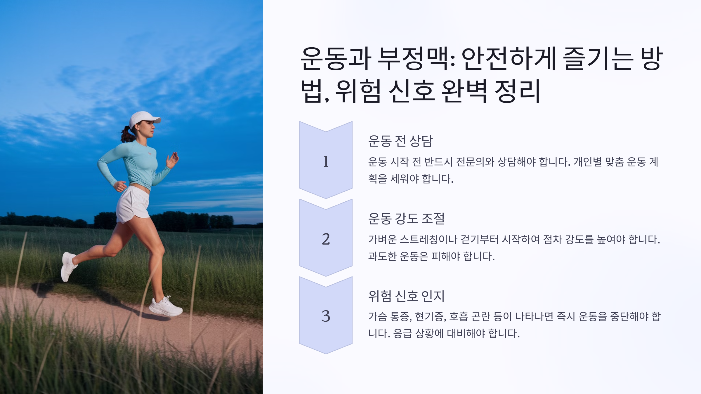 운동은 심장 건강을 유지하는 데 중요한 역할을 하지만, 부정맥 환자는 운동을 할 때 몇 가지 주의해야 할 점이 있어요. 부정맥의 유형과 심장의 상태에 따라 운동 강도를 조절하는 것이 중요해요.