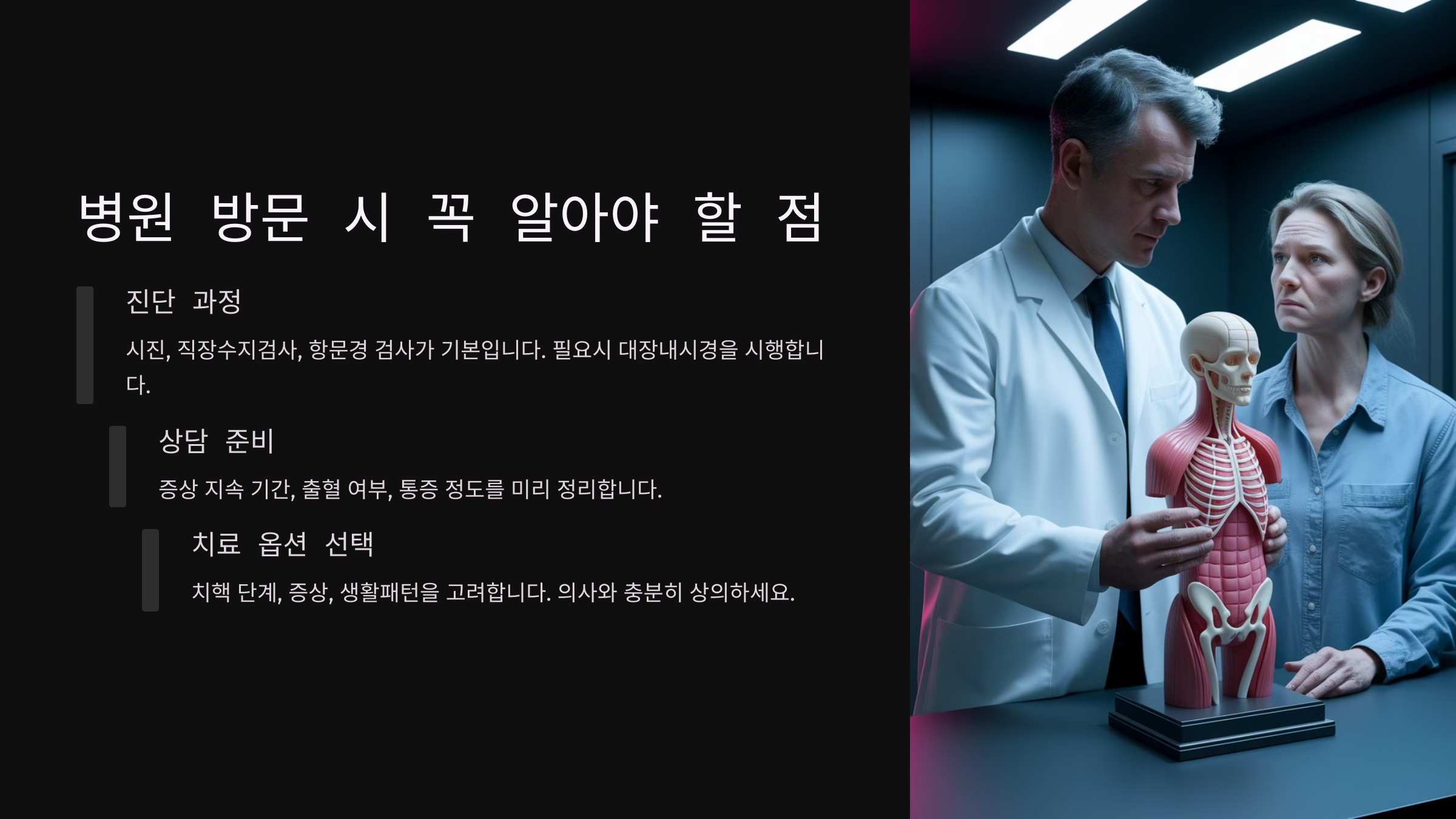 그럼 이제, 치핵으로 병원 방문 시 꼭 알아야 할 점에 대해 알아볼까요? 🏥