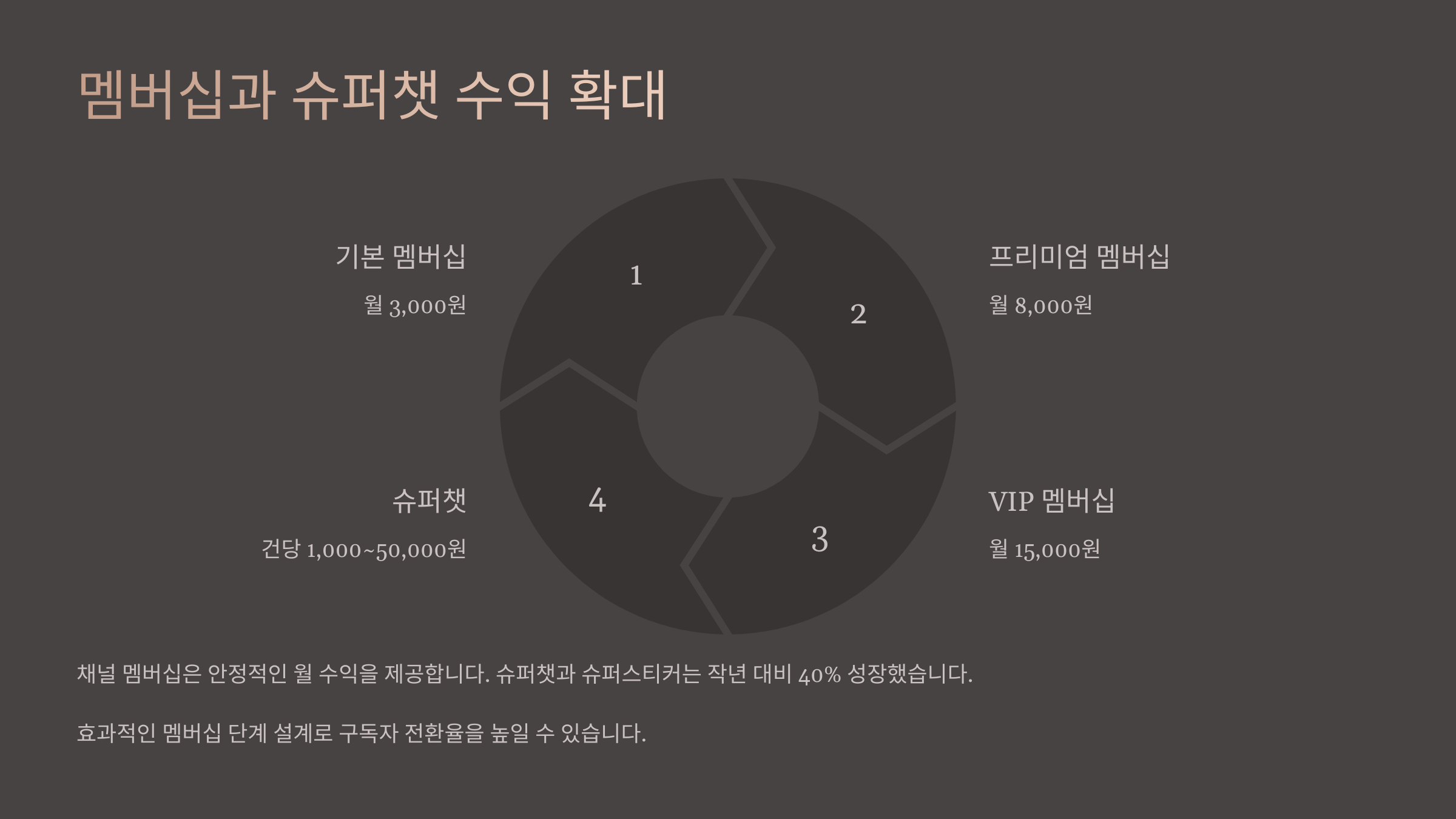 유튜브 멤버십은 구독자들이 매월 일정 금액을 내고 크리에이터의 전용 콘텐츠나 특별 혜택을 받는 기능이에요. 크리에이터는 멤버십 가입자들에게 배지, 이모티콘, 독점 영상 등을 제공하면서 꾸준한 수익을 얻을 수 있답니다. 특히, 충성도 높은 팬층이 있는 채널일수록 멤버십 수익이 크게 증가하는 경향이 있어요. 📈