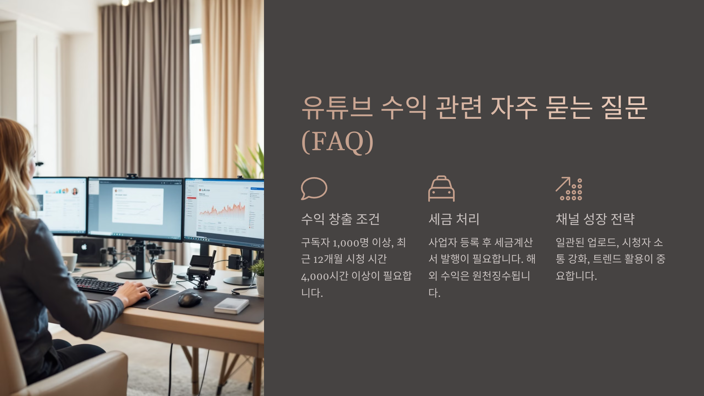 마지막으로, 유튜브 수익과 관련해서 사람들이 가장 많이 묻는 질문(FAQ)을 정리해볼게요! 📢