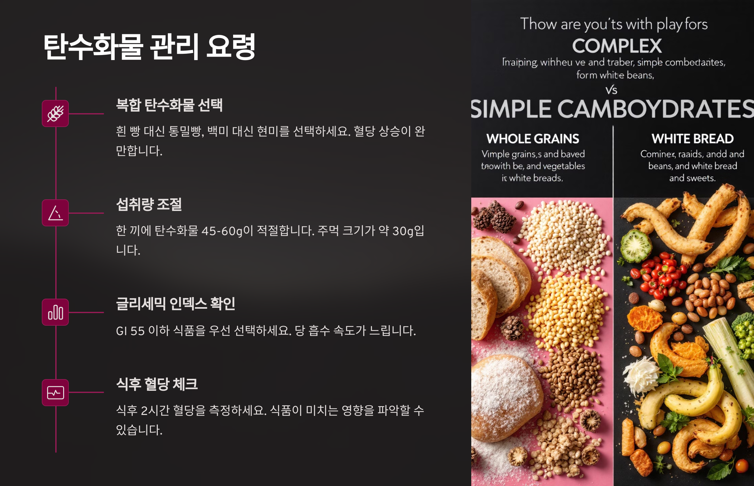 당뇨병 관리를 위한 식단에서 가장 신경 써야 할 영양소는 단연 탄수화물이에요. 탄수화물은 우리 몸의 주요 에너지원이지만, 혈당을 가장 빠르게 올리는 요소이기도 해요. 그래서 탄수화물의 ‘양’과 ‘질’을 동시에 관리하는 게 핵심이죠.