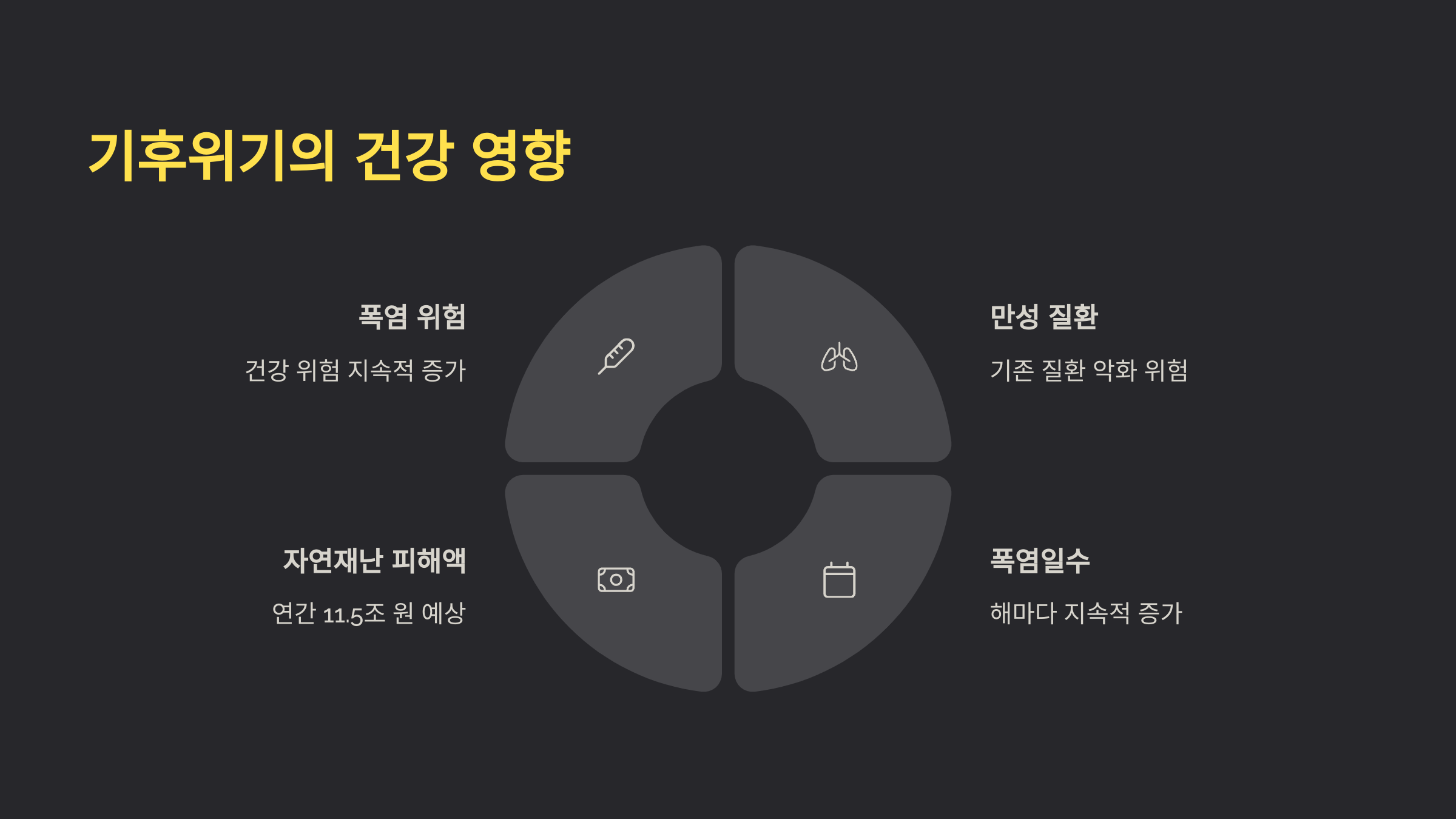 최근에는 이상기후 현상이 점점 더 빈번해지고 있어요. 여름엔 유례없는 폭염이, 겨울엔 기록적인 한파가 번갈아 나타나는 걸 느껴보셨을 거예요. 이런 기후의 급격한 변화는 사람들의 건강과 삶의 질에도 큰 타격을 주고 있어요.