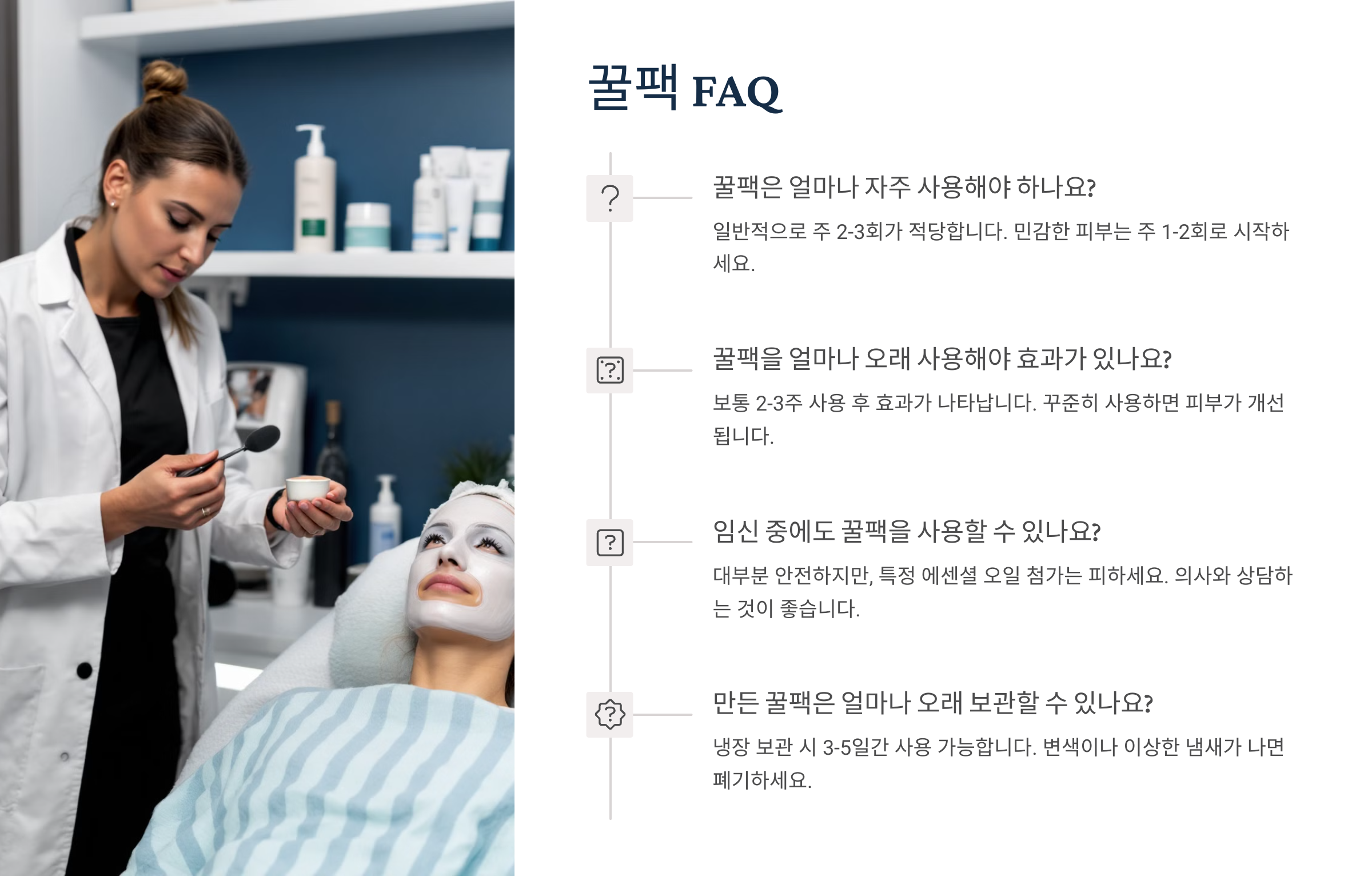 자연에서 온 꿀은 알레르기 반응이 드물기 때문에 대부분의 피부 타입에 잘 맞지만, 그래도 첫 사용 전에는 팔 안쪽 테스트를 꼭 해보는 게 안전해요. 민감성 피부도 꿀팩만큼은 편안하게 사용할 수 있다는 점에서 인기가 높은 거죠.