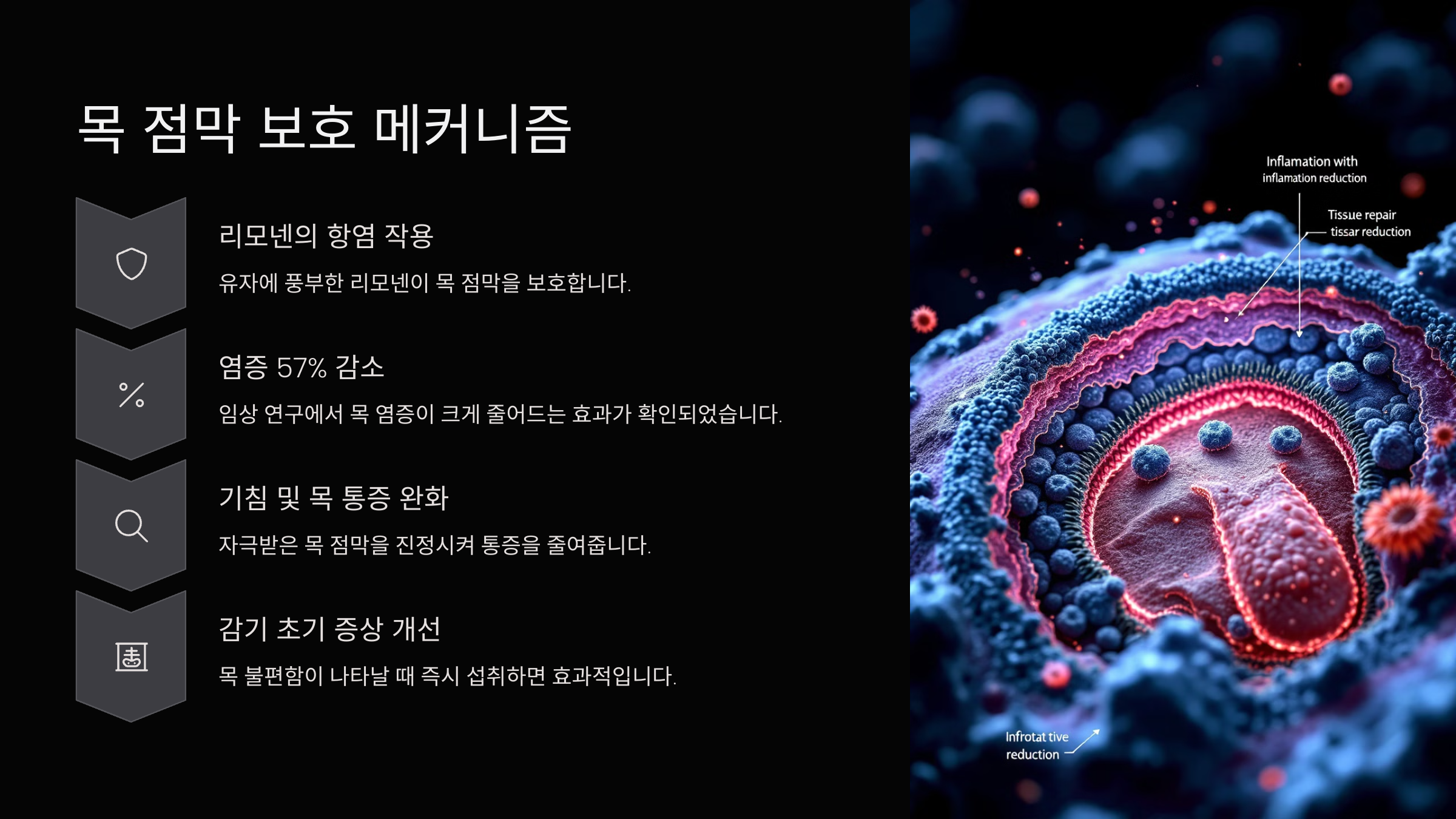 | 플라보노이드 | 혈관 보호 및 점막 강화 | 목 점막 안정 |