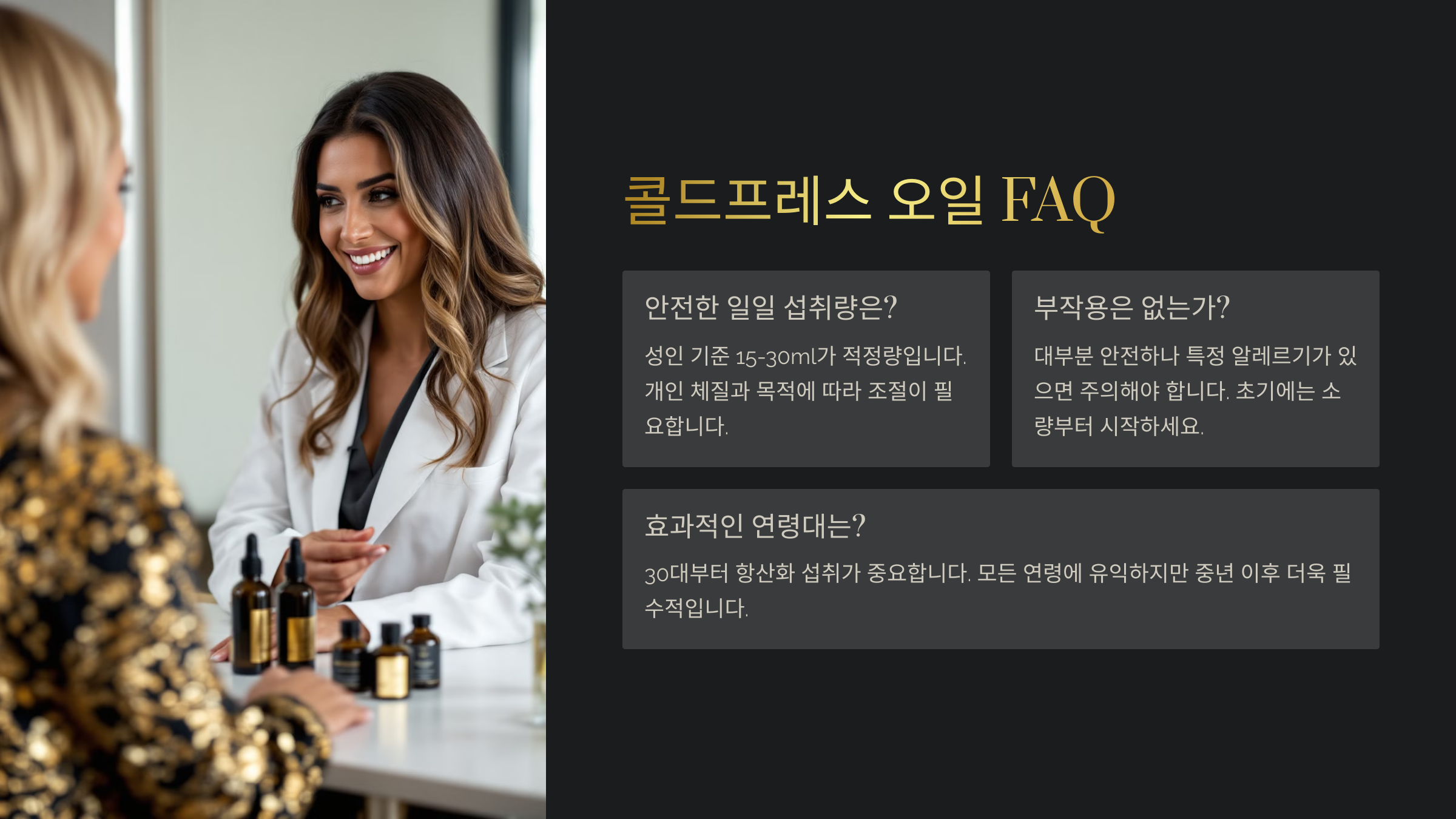 그럼 지금부터 콜드프레스 오일의 효과와 올바른 복용법, 노화를 늦추는 오일 종류까지 자세히 알아볼게요. 각 섹션은 자연스럽게 연결되어 있으니 끝까지 읽어주세요 😊