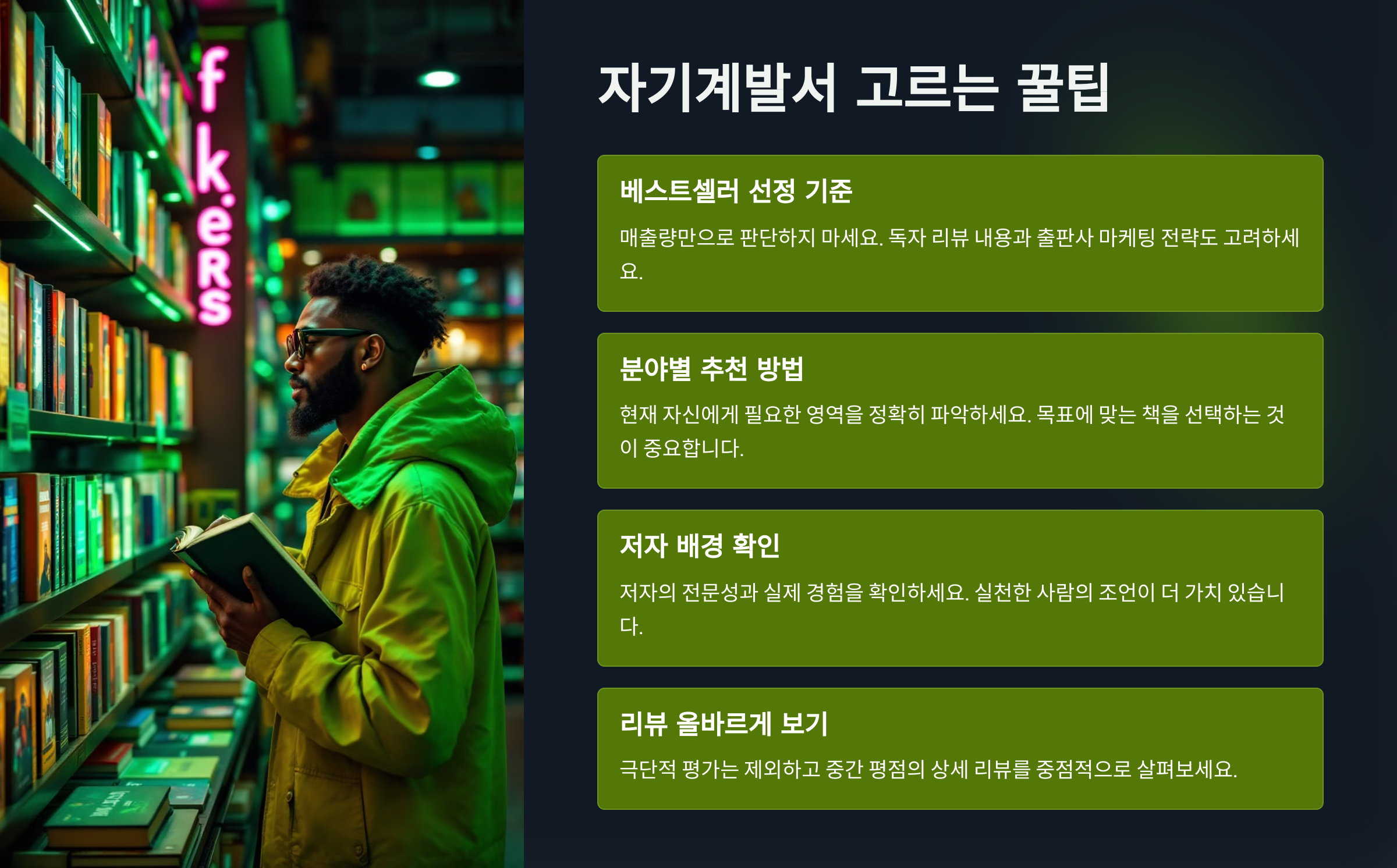 이제 어떤 책을 지금 사야 할지 고민된다면 다음 섹션을 주목해주세요. 2025년 현재, 가장 많이 팔리고 있고 가장 리뷰가 좋은 자기계발서를 추천해드릴게요! 🛒