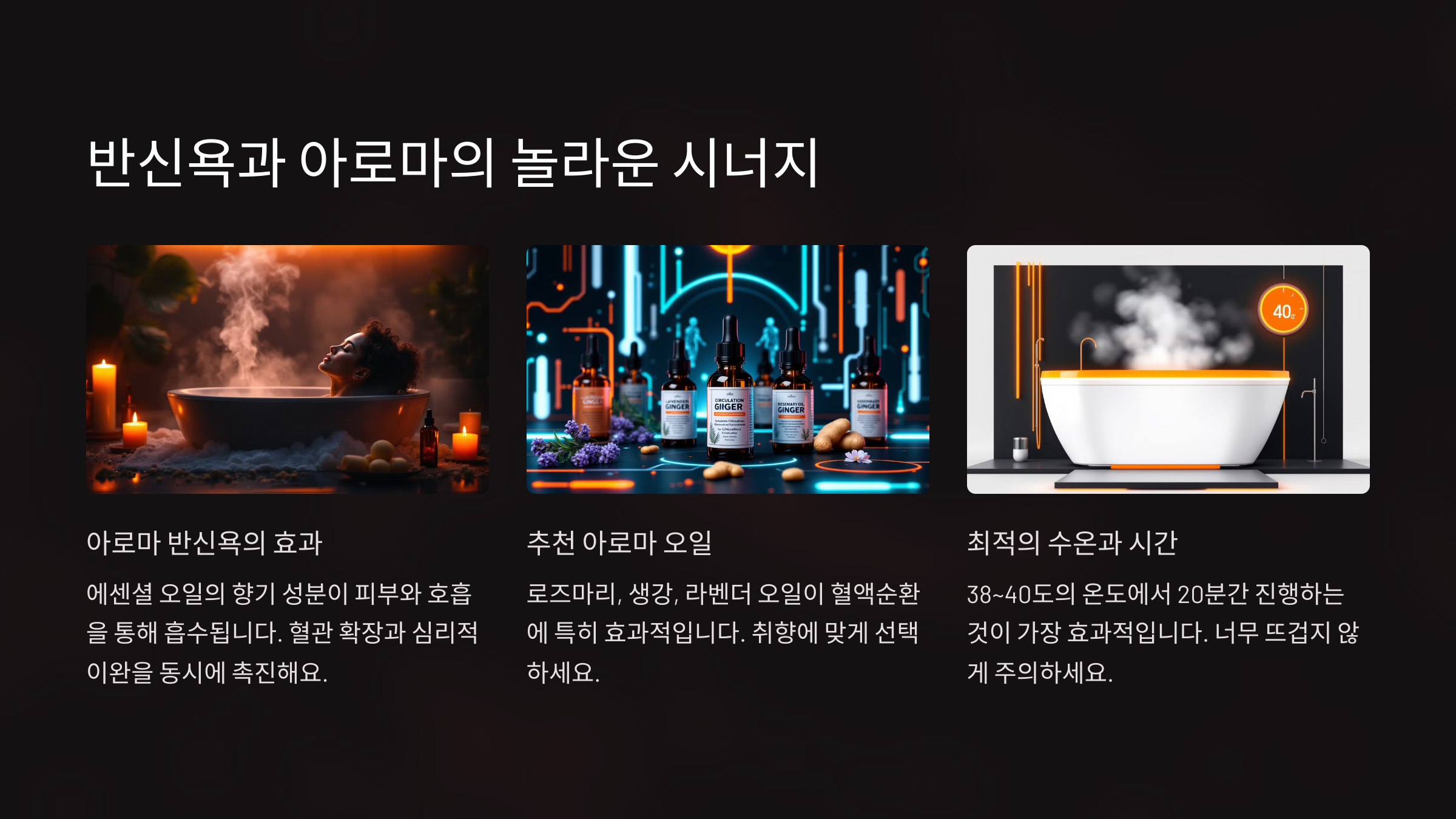 내가 생각했을 때 가장 좋았던 점은 수면 질 향상이었어요. 반신욕 후 몸이 노곤해지면서 깊은 잠에 빠지기 쉬워졌거든요. 그만큼 순환은 삶의 질과도 직결된다는 거죠.