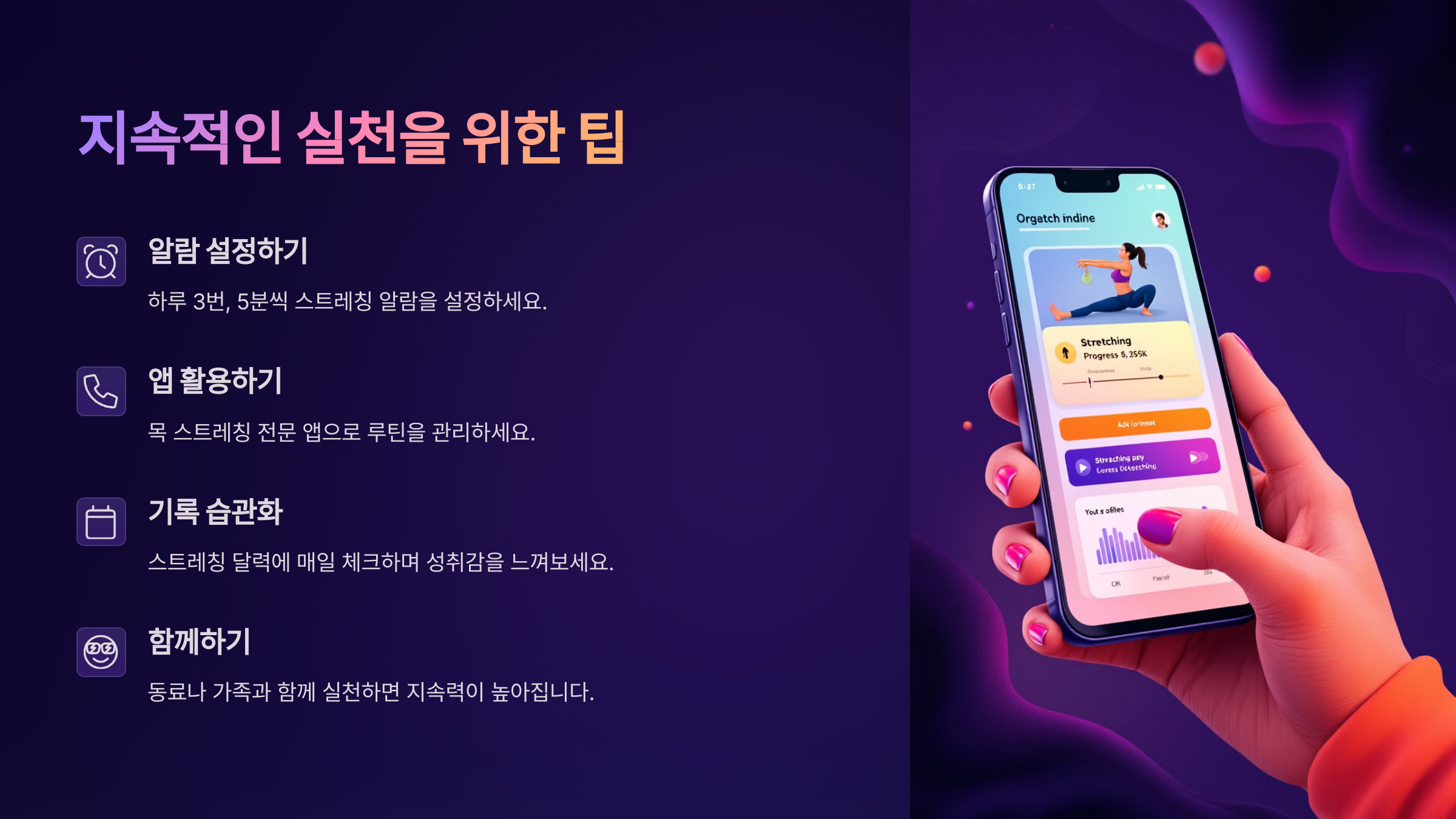 스트레칭은 단기 효과보다는 장기적인 습관이 핵심이에요. 매일 실천하려면 다음과 같은 팁을 활용해보세요. 🔁