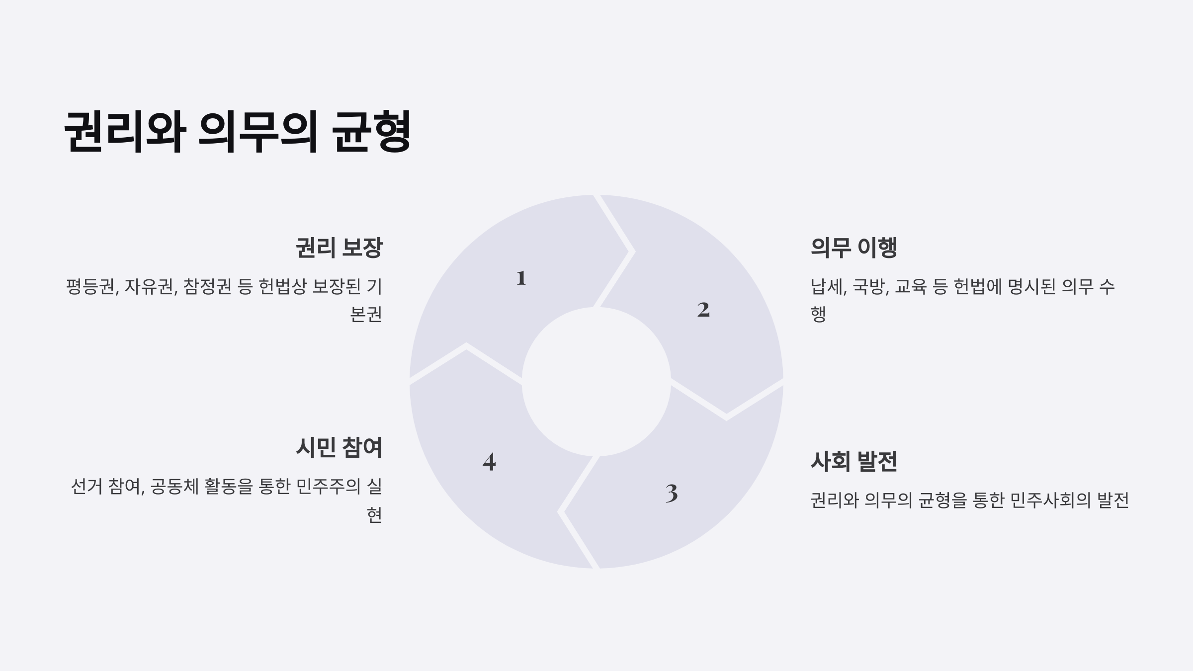 헌법은 권리와 의무를 각각 따로따로 규정하지 않아요. 실제로는 하나의 동전 앞뒷면처럼 서로 밀접하게 연결돼 있답니다. 한쪽만 강조하면 불균형이 생기고, 사회 통합도 어려워져요.