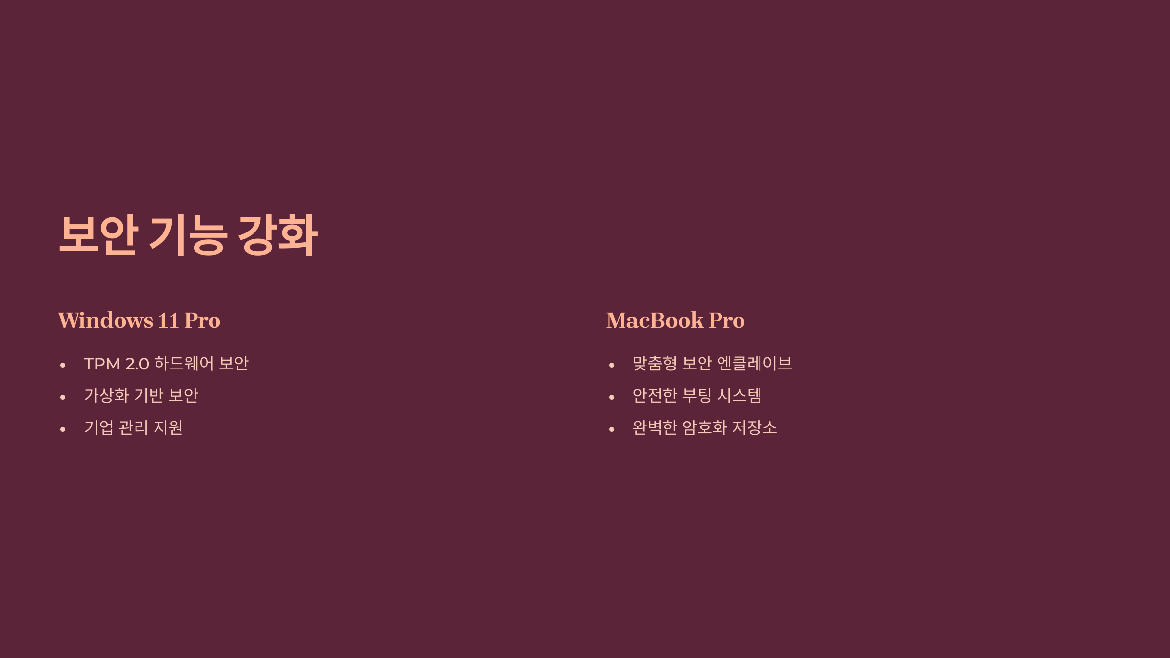 A4. 꼭 그렇진 않아요. 맥북은 타건감, 디스플레이 품질이 좋아서 오히려 문서 작성에 최적화된 모델이기도 해요.