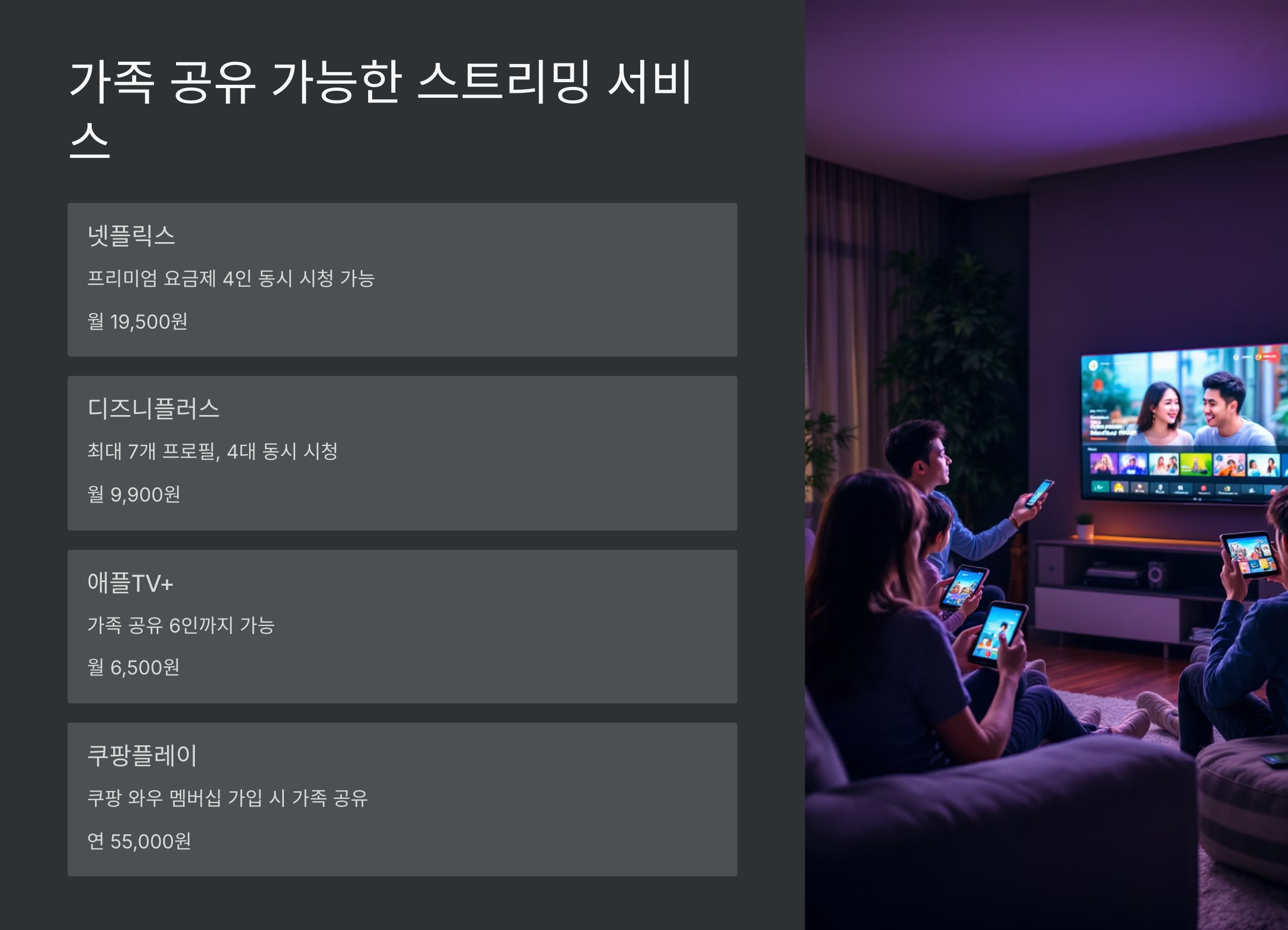 ✅ 가족 공유가 가능한 대표 스트리밍 서비스