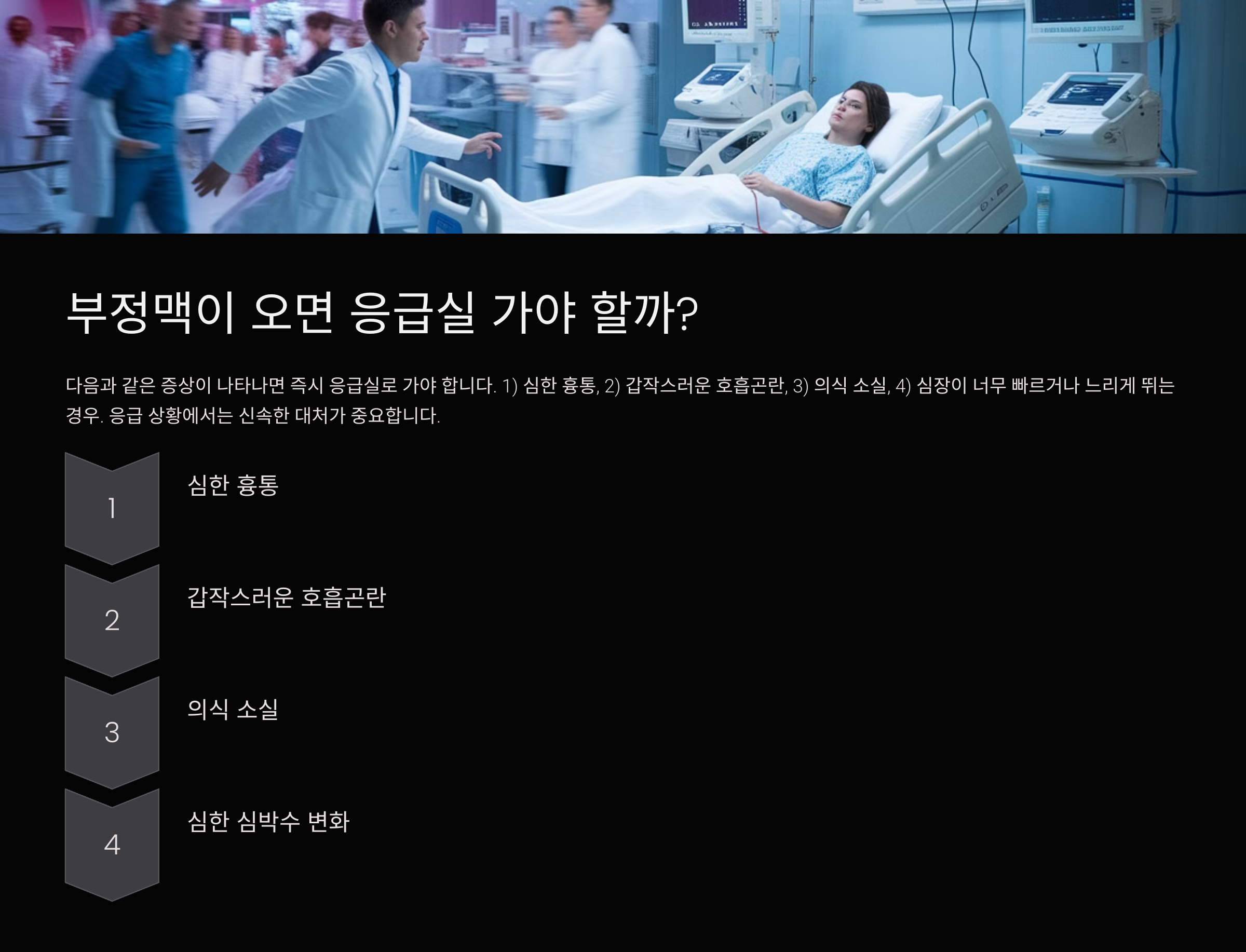 부정맥 증상이 발생하면 당황할 수 있어요. 하지만 모든 경우 응급실에 갈 필요는 없어요. 아래 증상이 동반된다면 즉시 병원에 가야 해요.