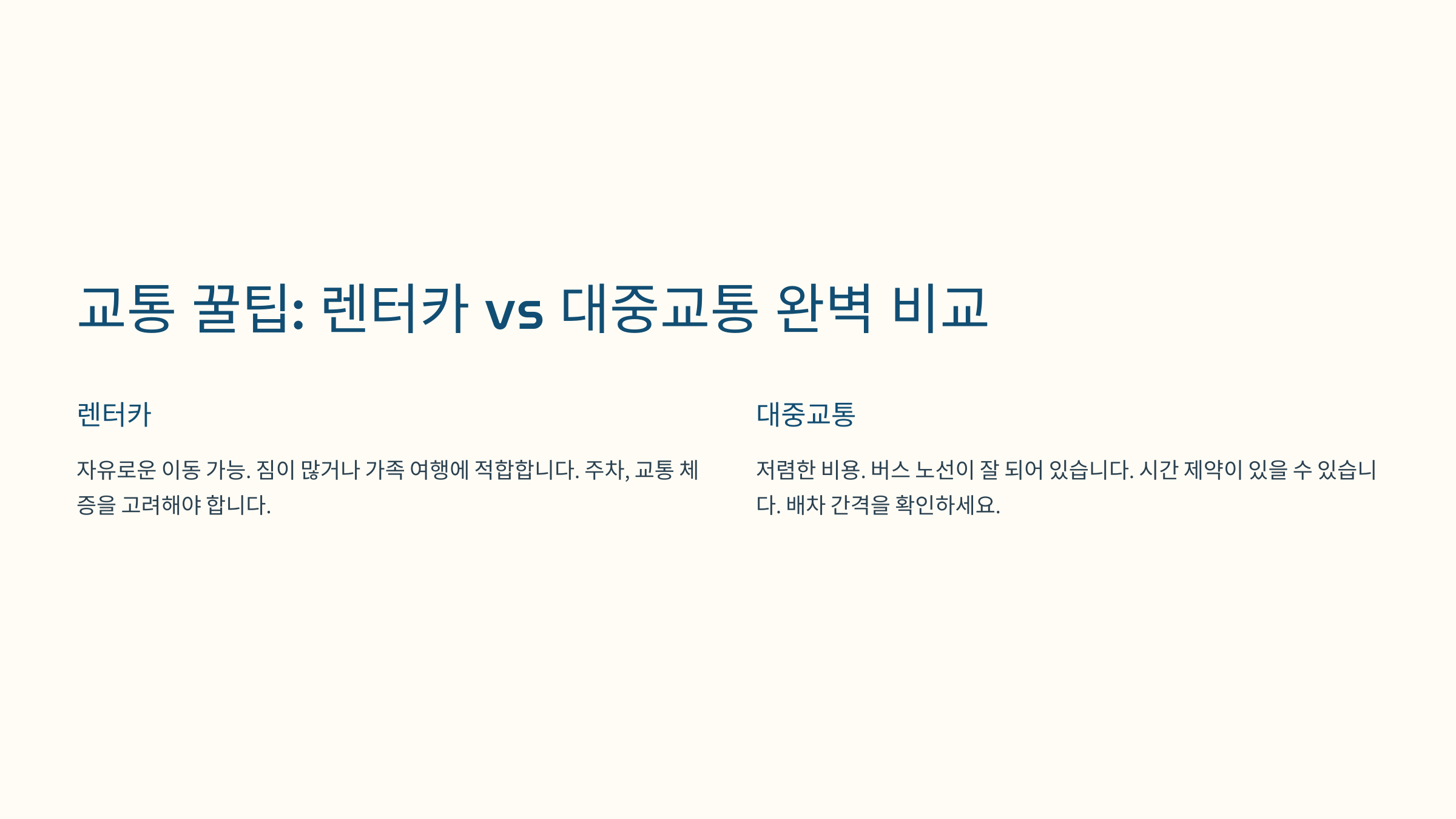 교통 꿀팁! 렌터카 vs 대중교통 비교