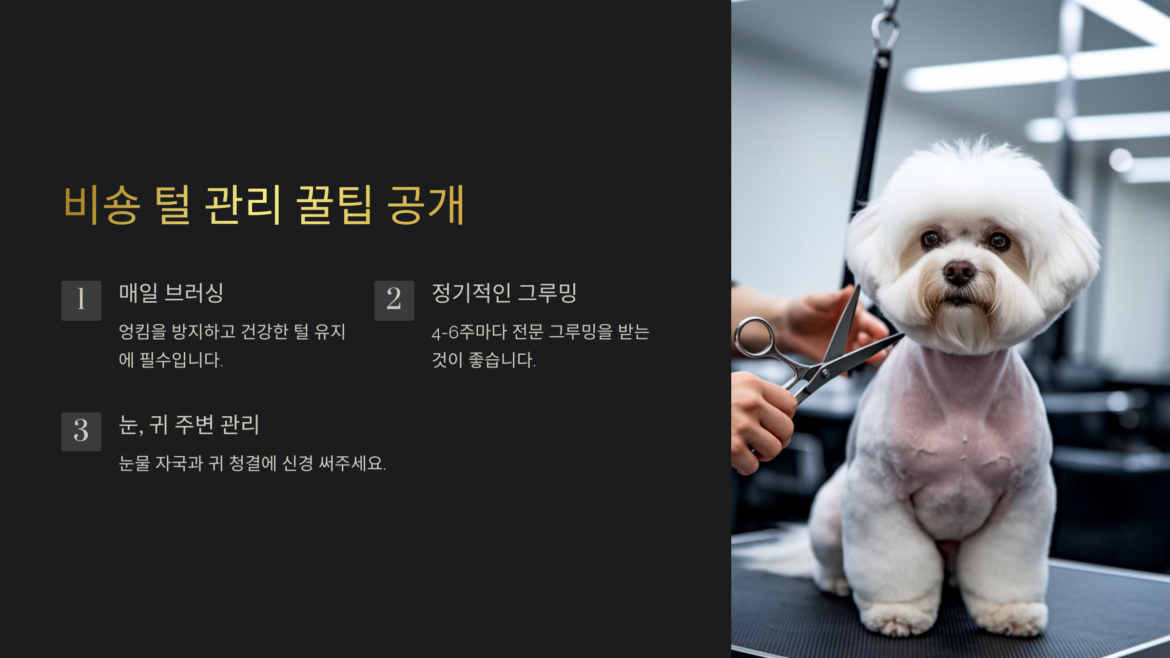 그럼, 비숑 털을 깨끗하고 건강하게 유지하는 꿀팁을 알려드릴게요! ✂️🐶