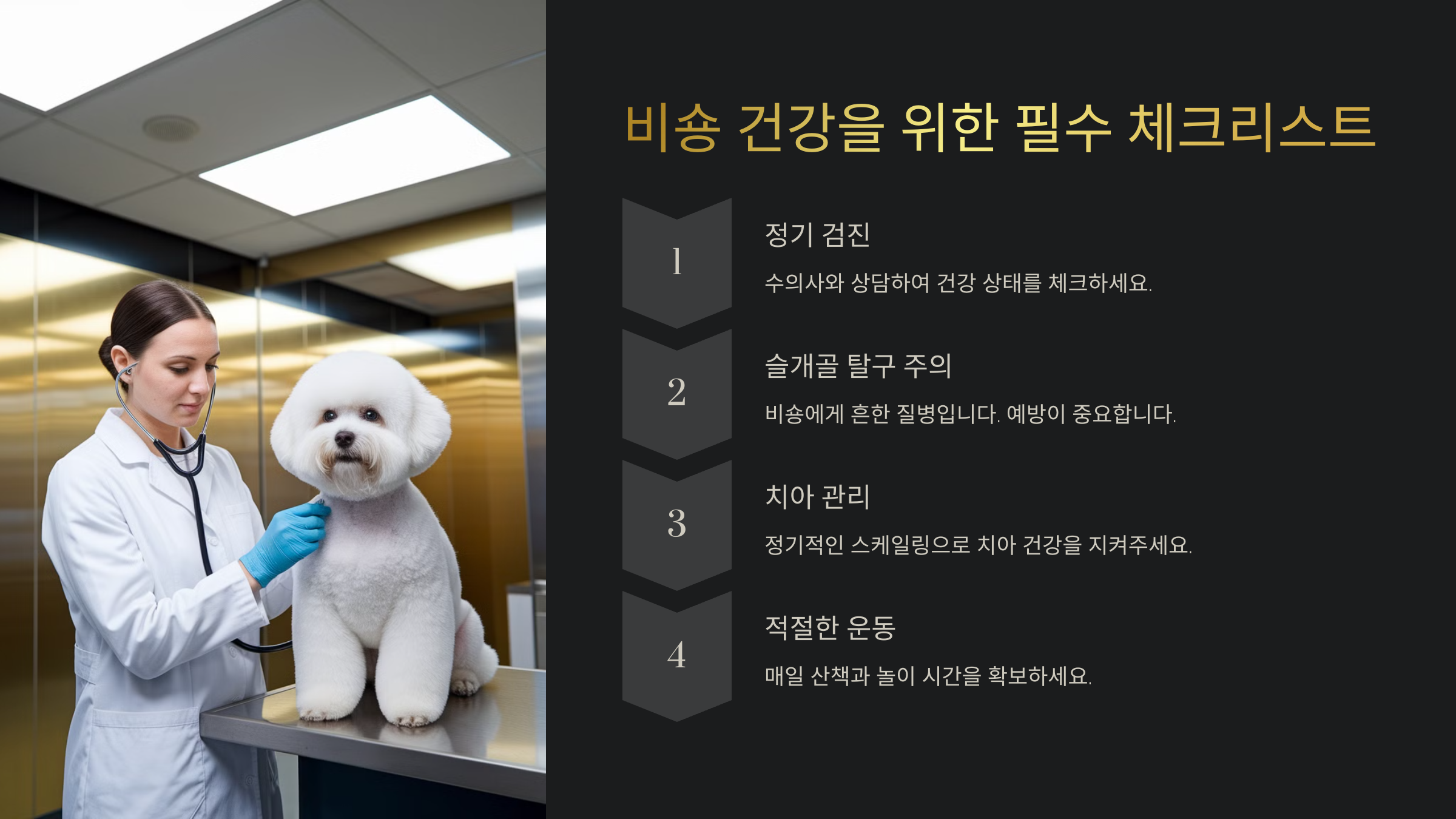 아래 체크리스트를 참고해서 비숑의 건강을 철저히 관리해보세요! ✅