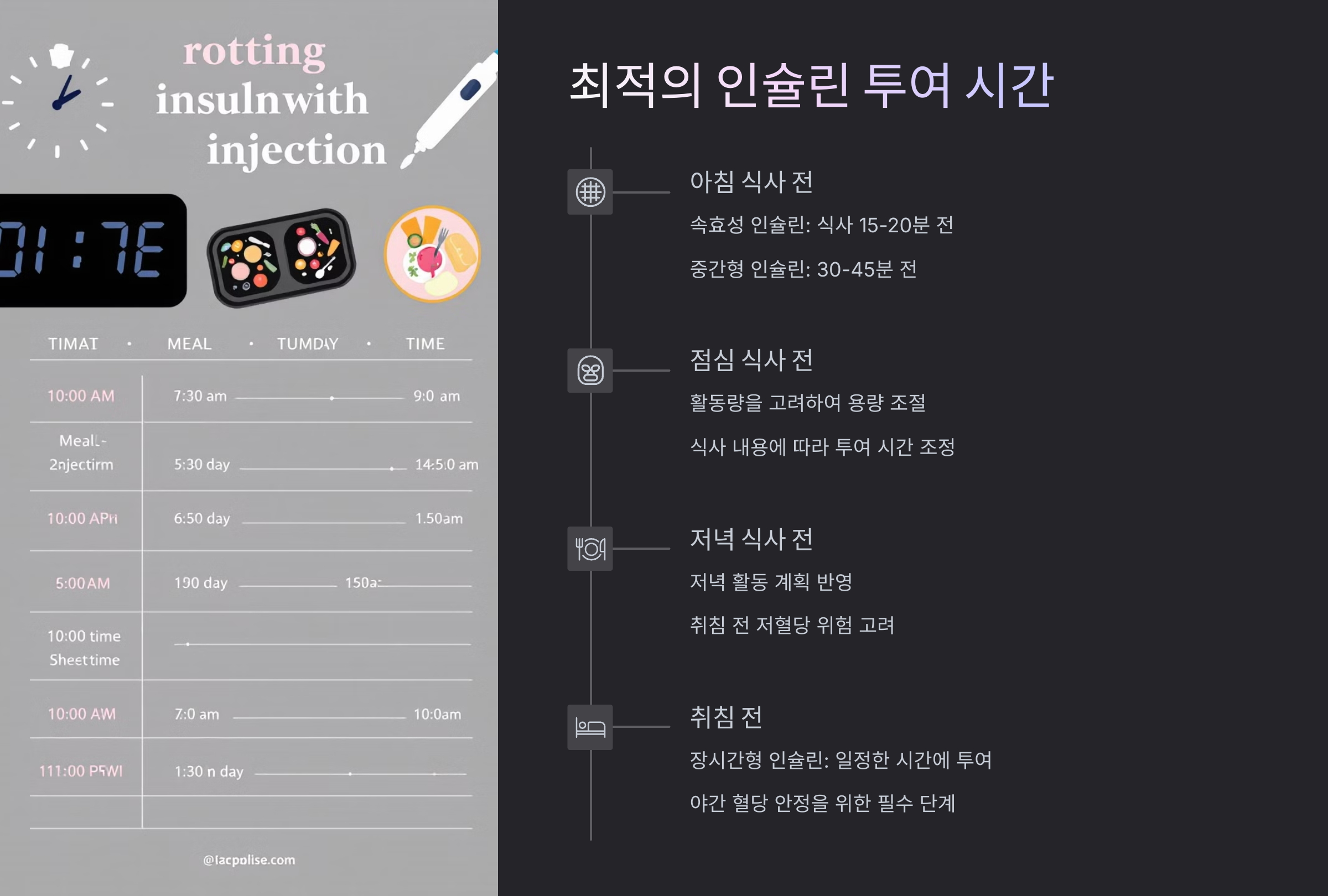 인슐린을 언제 맞느냐에 따라 혈당 조절 효과가 달라져요. 올바른 투여 타이밍을 맞추면 저혈당이나 고혈당을 예방할 수 있어요.