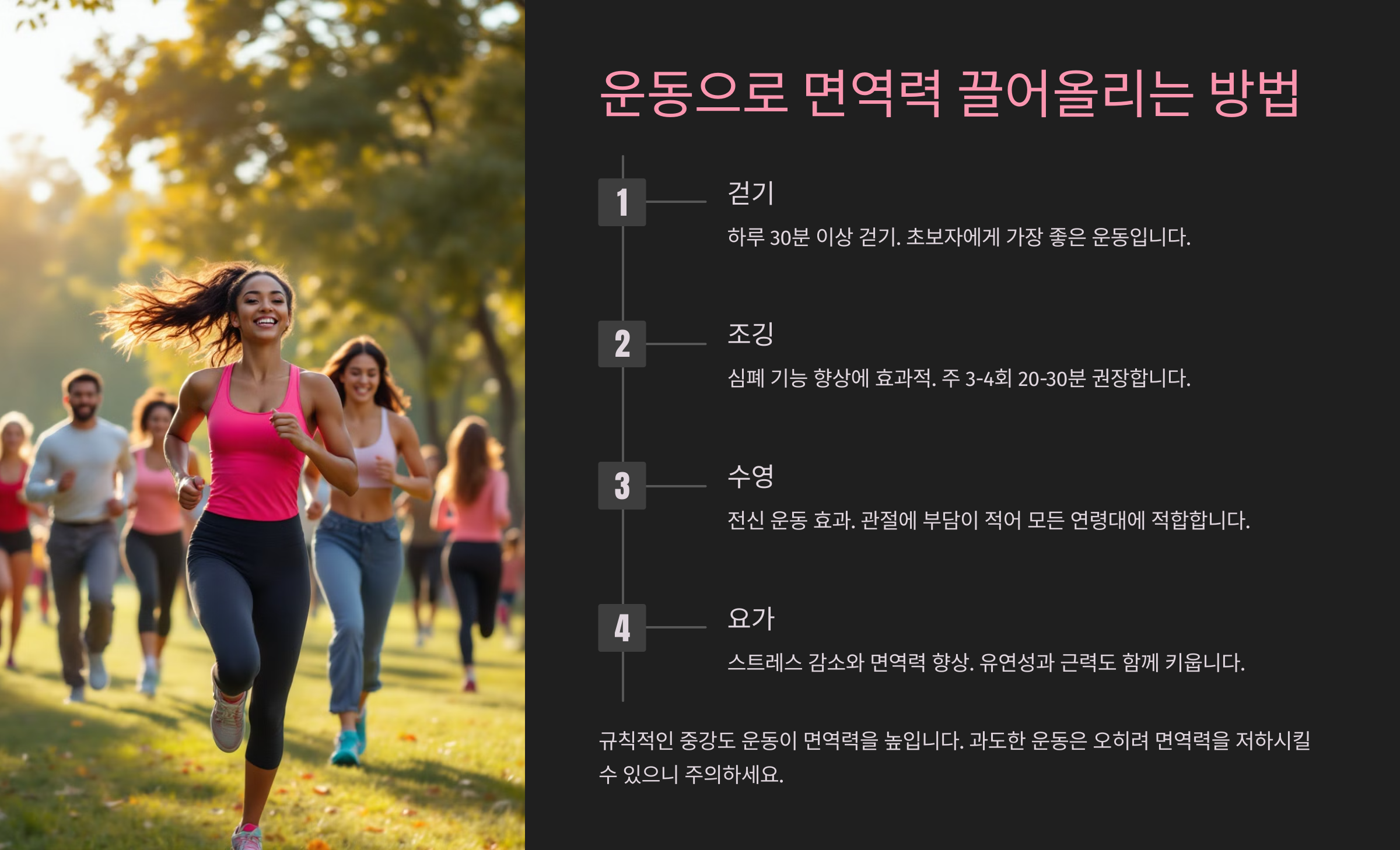 그럼 면역력 강화를 위한 효과적인 운동 방법을 알아볼까요? 👇