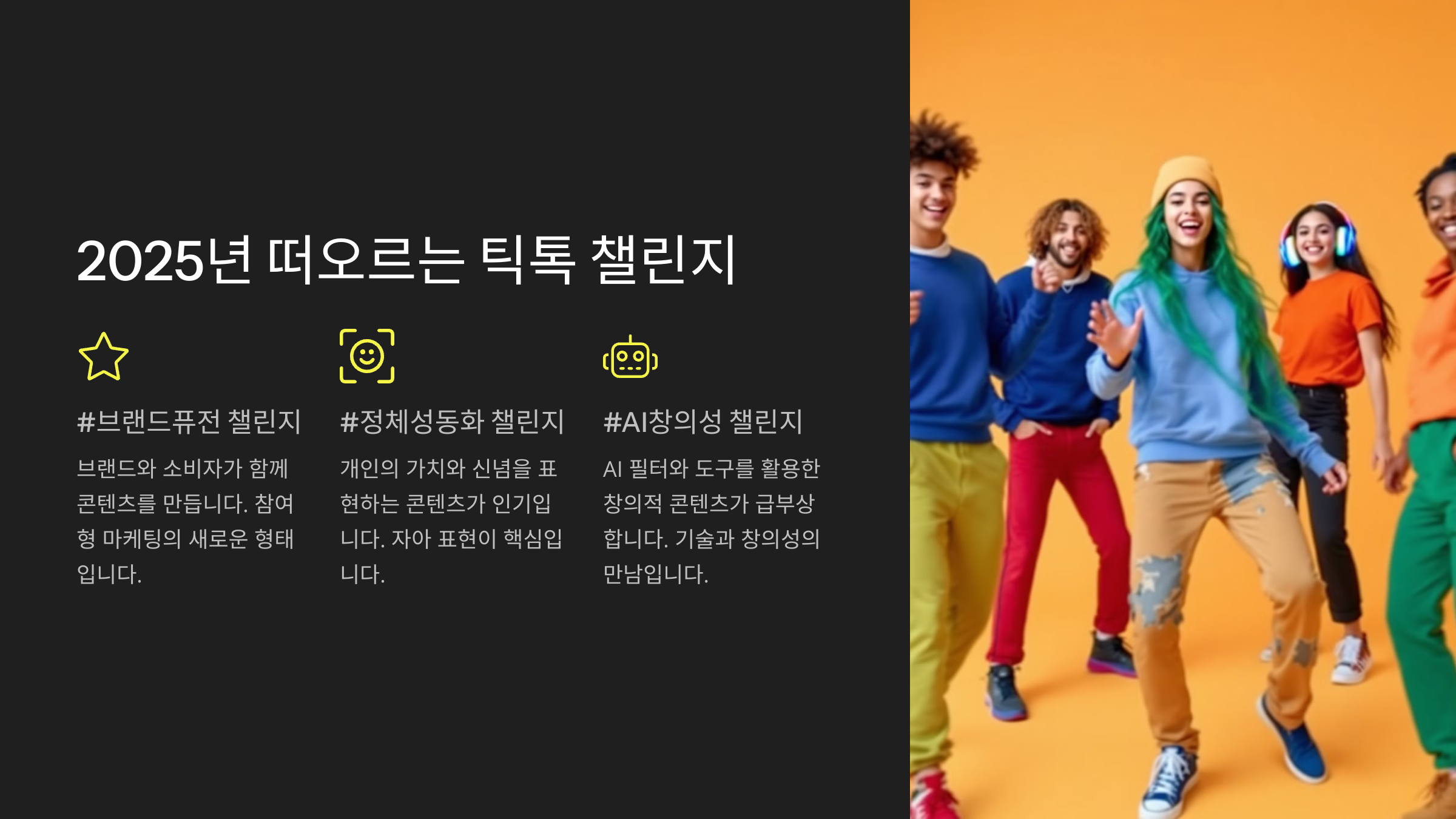 특히 'AI 변신 챌린지'는 틱톡에서 가장 빠르게 성장하는 트렌드 중 하나예요. AI 기술을 활용해 과거와 현재 모습을 비교하는 영상이 큰 인기를 끌고 있어요.